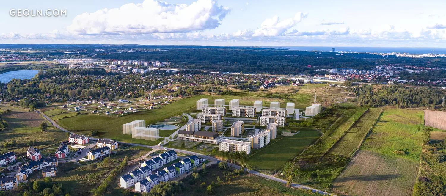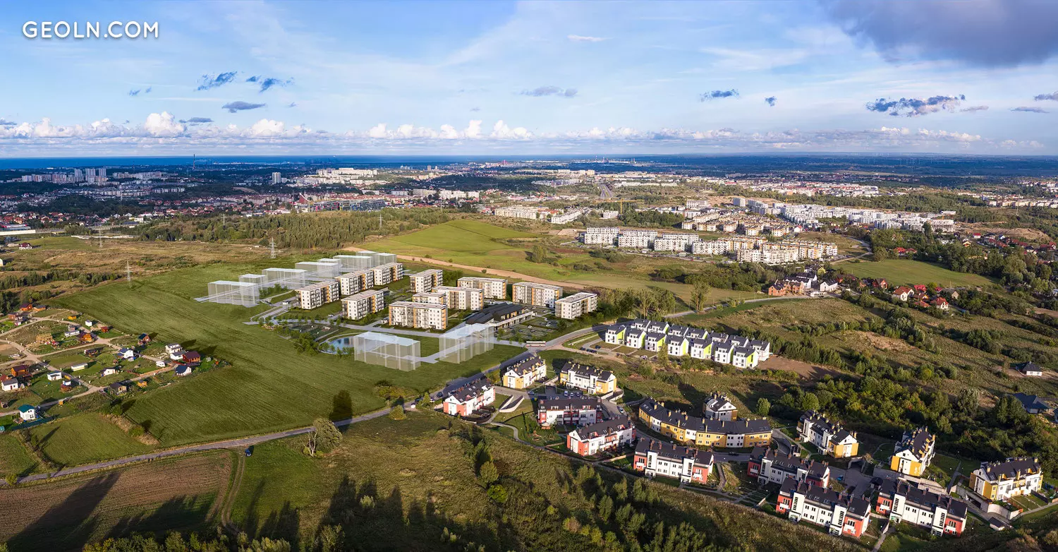 The estate is located at Stężycka Street, within the Gdańsk district of Jasień, almost 8 kilometers away from the city center. The vicinity of the investment has basic commercial, service, educational, sports and recreational infrastructure, it is well connected with other parts of the city, it is characterized by modern residential buildings and the surroundings of vast green areas.