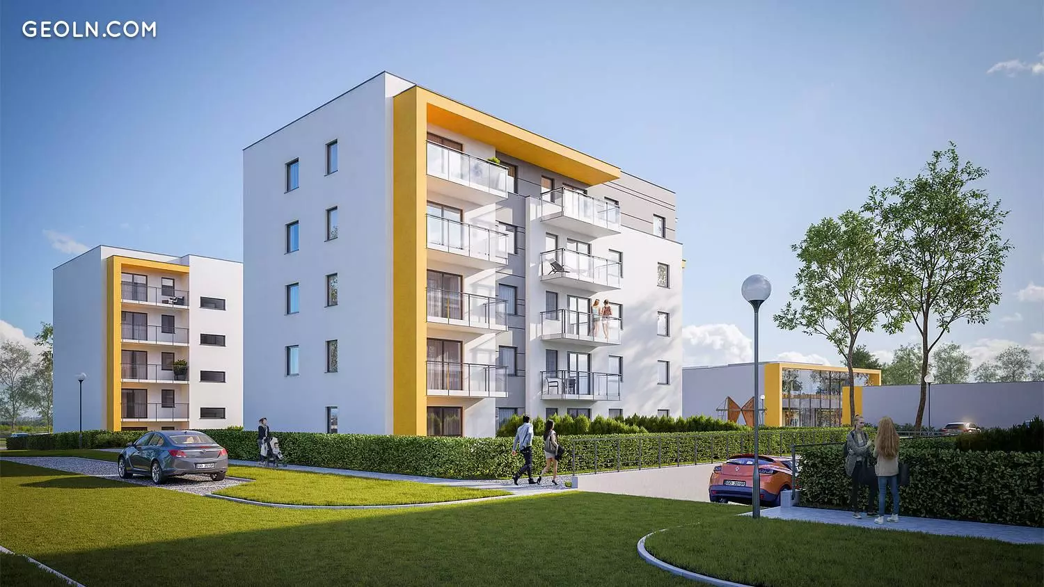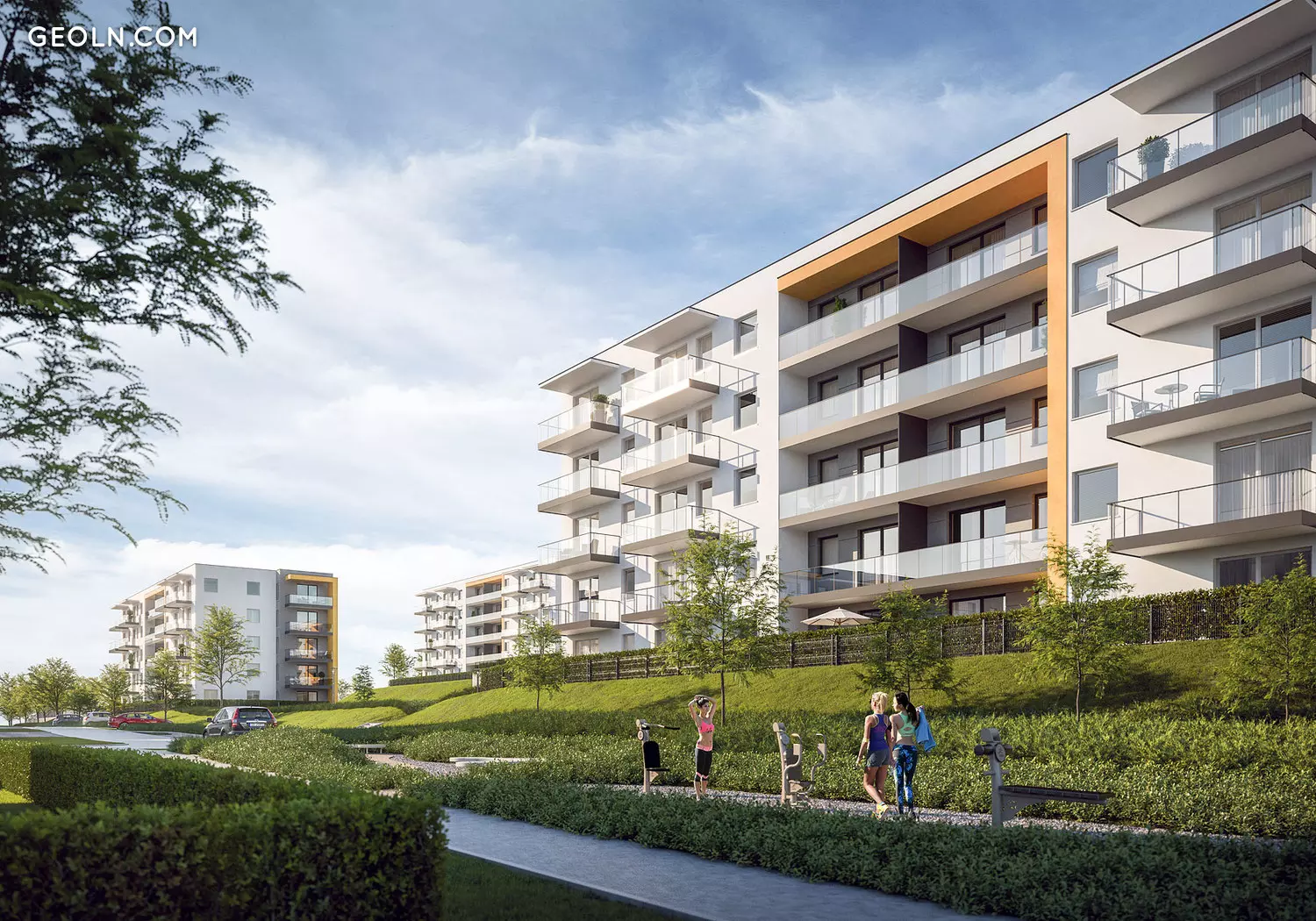 Optima, a multi-stage housing estate consisting of intimate multi-family buildings and service buildings, is being developed in the western part of Gdańsk and has an autonomous housing estate infrastructure.