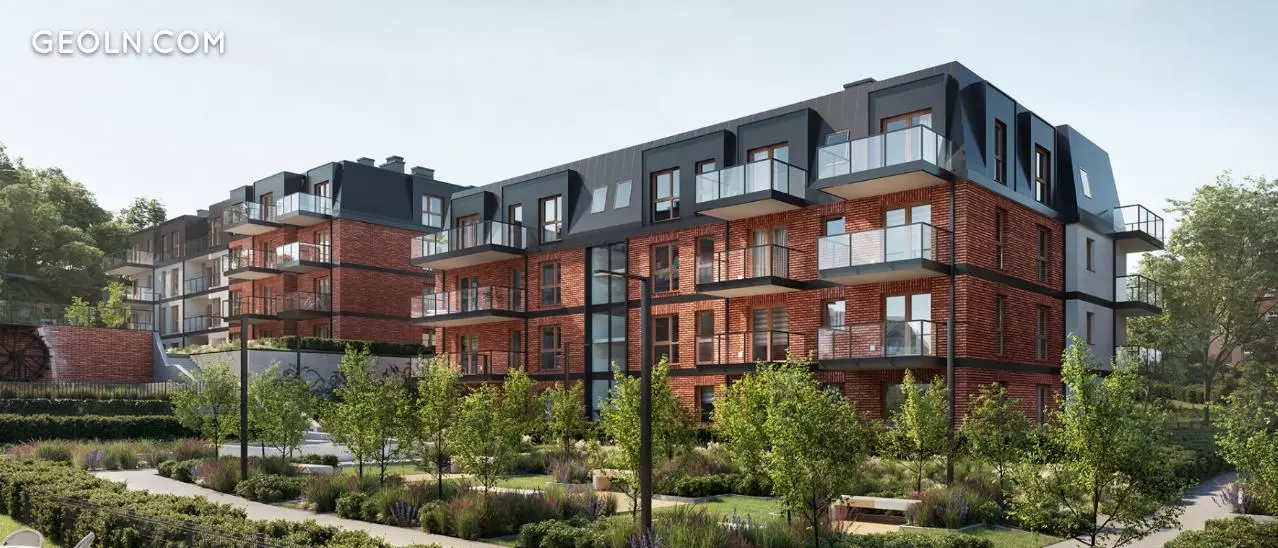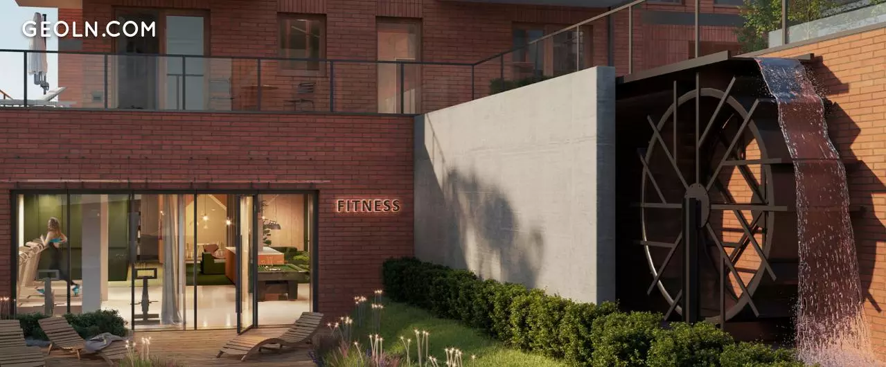 The enclosed, monitored and protected area of the investment features decorative elements in the form of a movable mill wheel with a water cascade, rain gardens, illuminated alleys, an internal courtyard with a patio and a recreational area, a playground for children, and access roads. The residents have at their disposal a lobby with a concierge, a resident's club, a private fitness room, tenant lockers, above-ground parking spaces, garage boxes and an underground car park with an electric car charging station. Silent-running elevators were installed in the buildings.