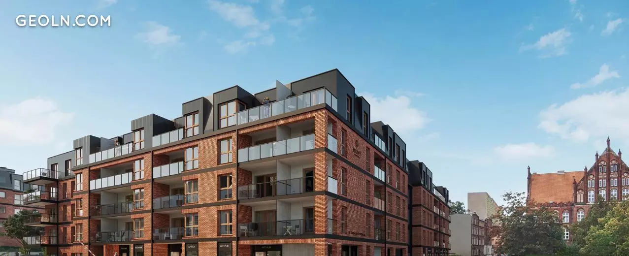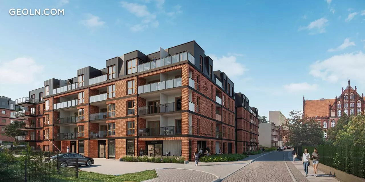 The architectural design of the investment was made in the B1 Architekci studio. The buildings with a height of 3 and 4 floors are erected in a modernist style, with accents referring to historical buildings. Various layouts of a simple body were used, including frontage elements, and mansard roofs with bay windows were made. The elevations were finished with red clinker bricks and enriched with numerous glazing and decorative elements in an industrial style. On the ground floor, common spaces and commercial and service premises have been designed.
