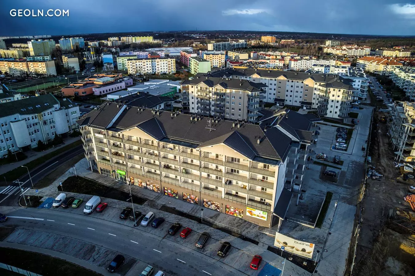 In the immediate vicinity of the investment there are grocery stores (Stokrotka, Lidl, Tesco, Żabka), restaurants, the Feeria shopping center, Castorama store, medical facilities, a dentist's office, and a hairdresser. The nearest Polish Post office is at ul. Ogiński, 1100 m from the estate. The nearest educational institutions are the Municipal Kindergarten No. 17 (500 m) and Primary School No. 20 with Integration Branches for them. Heroes of Westerplatte (1100 m). Górczyńska Park and 750th Anniversary Park are located 1700 m from the investment.