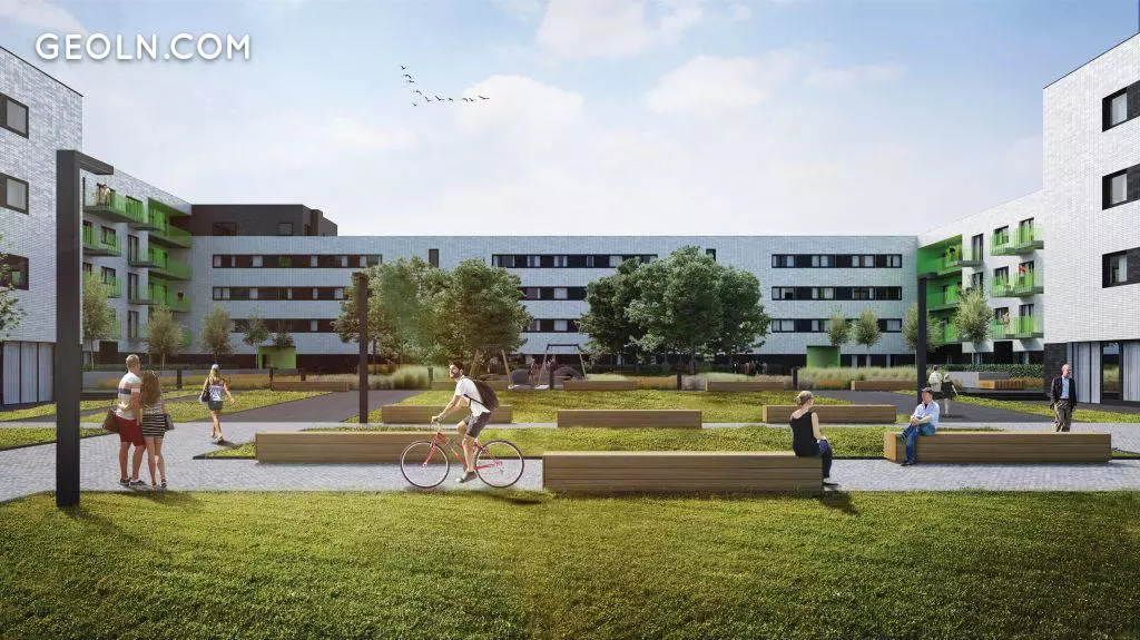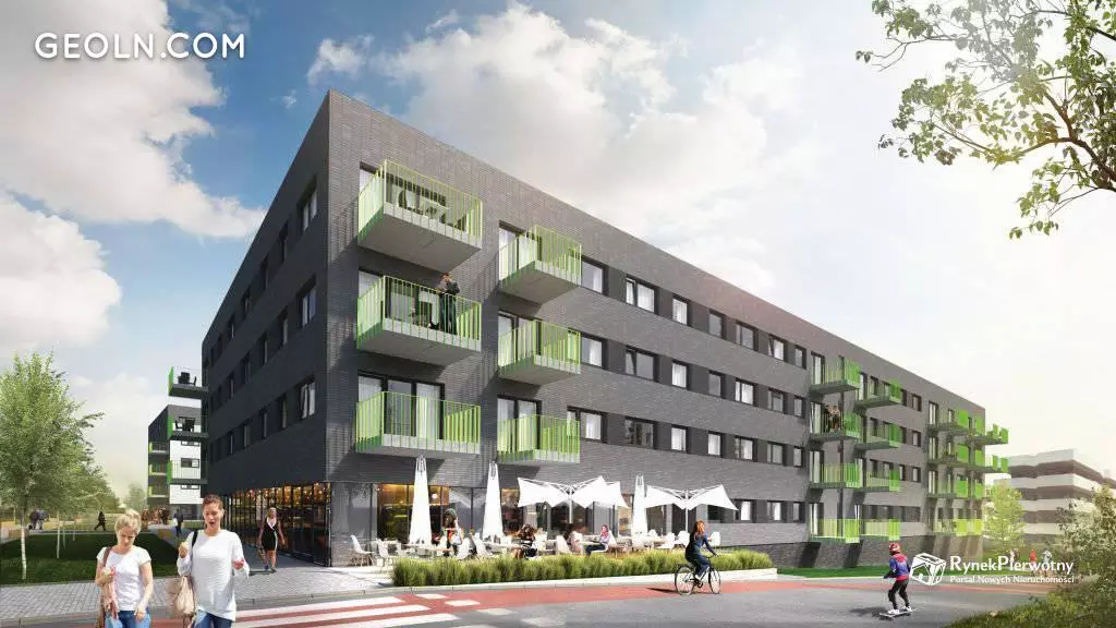 In the open area of the Mieszkaj w Miasto housing estate, residential and office development, own city park with an area of 3.15 hectares, and a network of internal roads were designed. Inside the estate, between the buildings, there are numerous patios and green areas, recreational promenades, there are also service premises (including a Żabka grocery store), a bicycle room and a pram. The buildings use the Visual Identification System, i.e. the marking of apartment numbers, staircases and parking spaces. Underground and above-ground parking spaces are planned, residents have at their disposal a car wash and parking spaces with sockets for electric cars. A housing estate club for residents has been designed in the estate - a common space of 320 square meters on the ground floor of one of the buildings. The estate is adapted to the needs of disabled people.