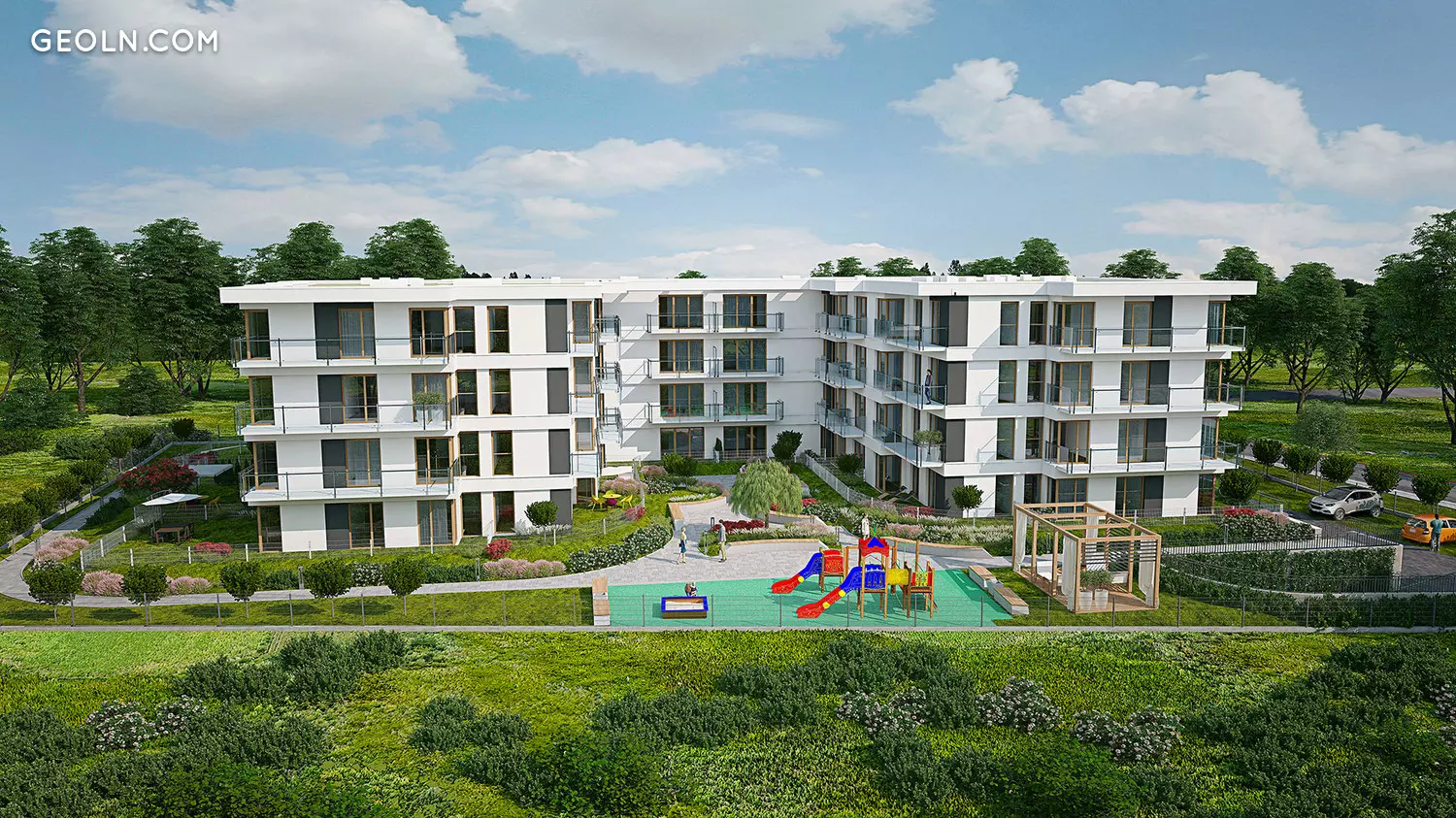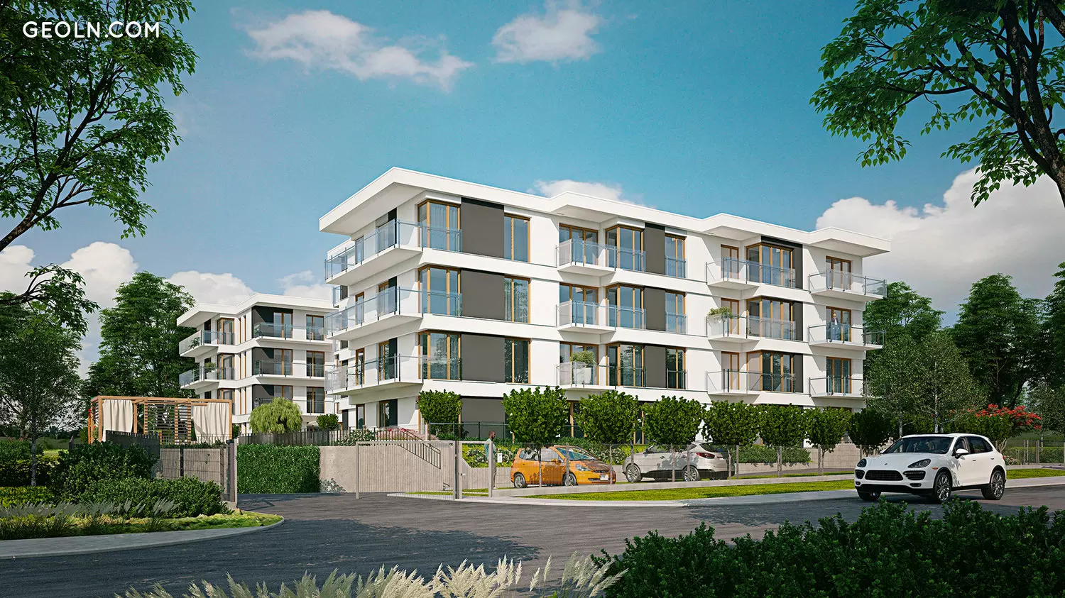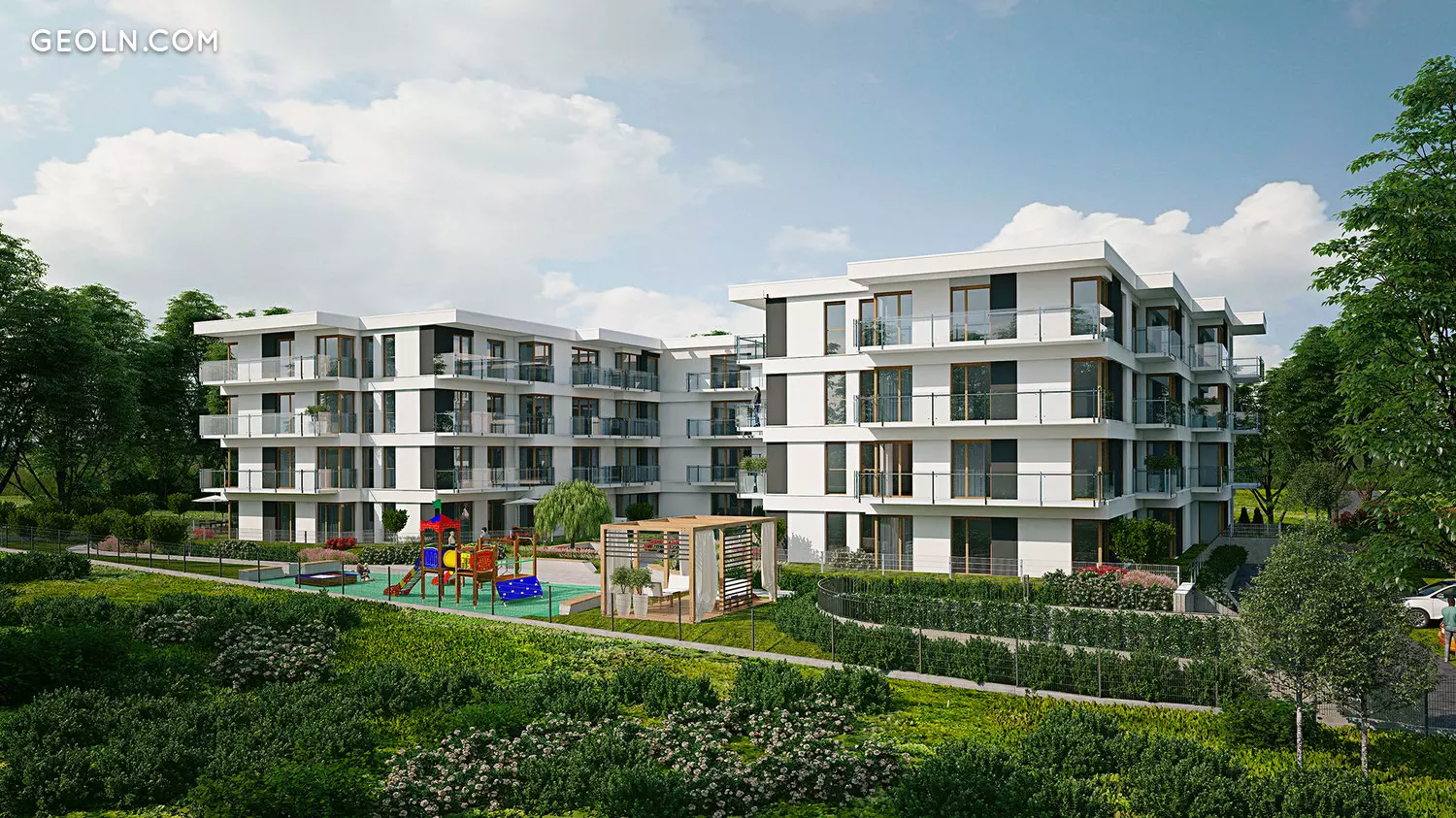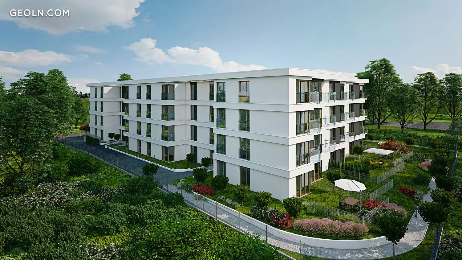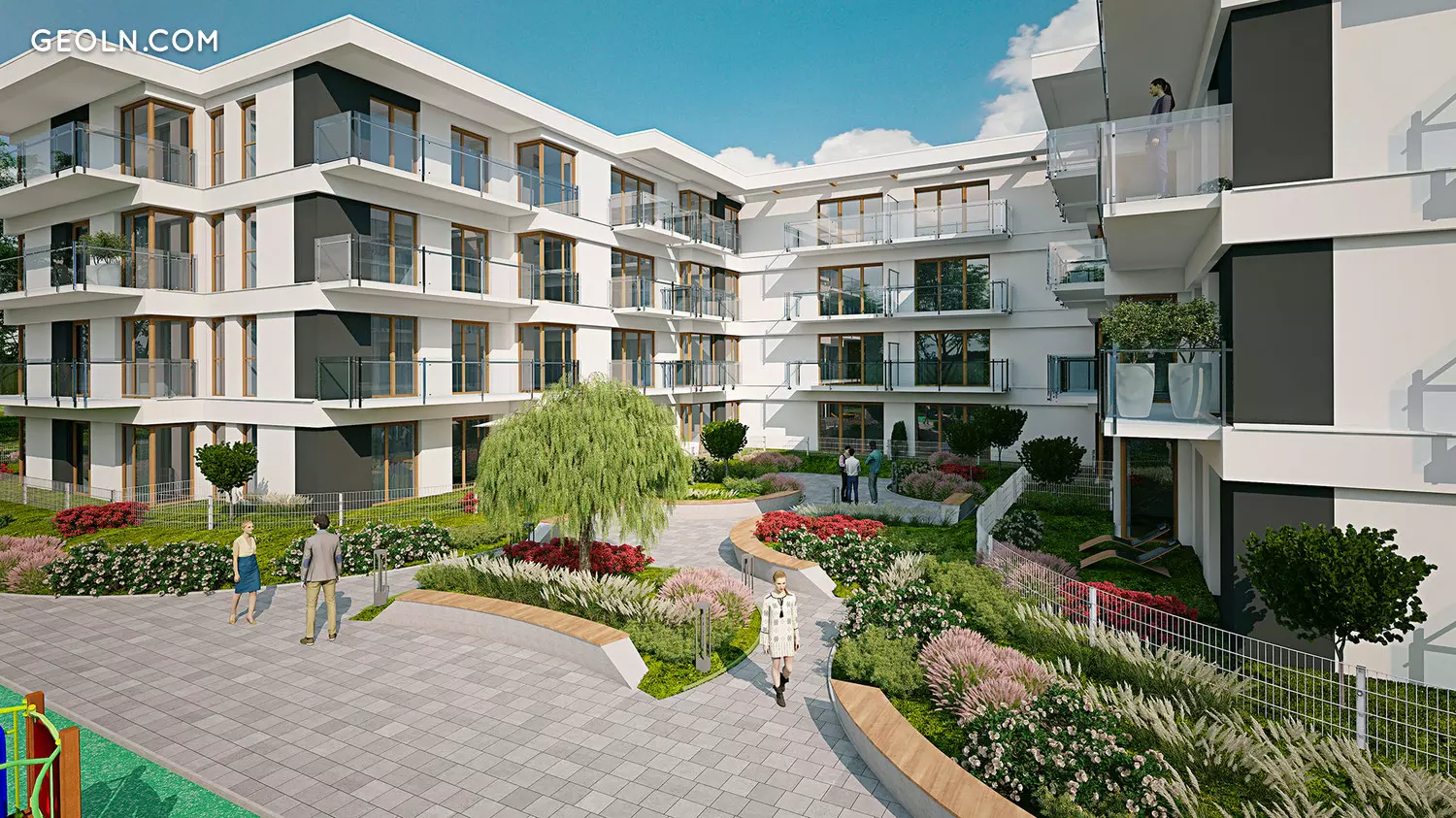 The investment includes 59 apartments with an area of 26 to 74 square meters and a layout of 1 to 5 rooms. The premises on the ground floor have private gardens, the apartments on the first floor have roofed balconies.