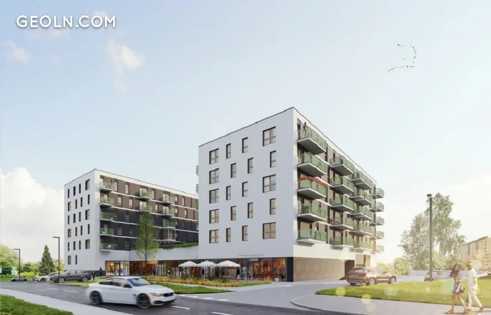 Domosfera is a modern building with a simple form and modern design. The architectural design of the building refers to the surrounding buildings. The colors of the building are subdued with contrasting gray, large glazing has been added, which provides additional lighting in the rooms.