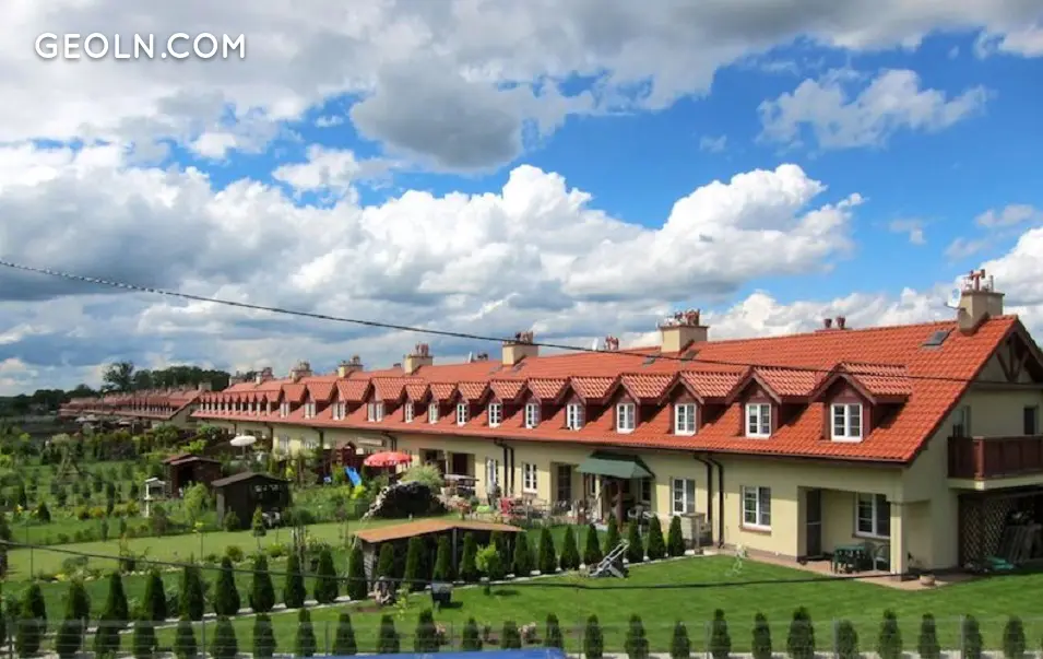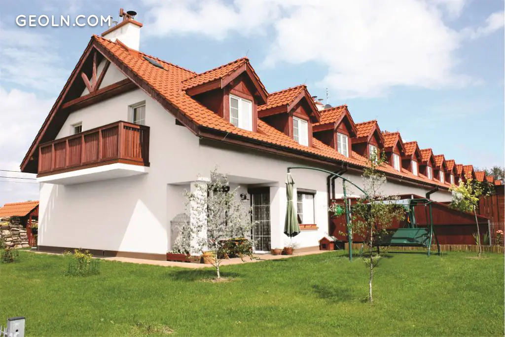 The buildings are designed as one-story buildings. They have an attic that can serve as a utility. Each of the terraced houses was built on a plot of 300 to 700 m2. In the case of plots of land with an area 300 m2, the residents have a 160 m2 garden.
