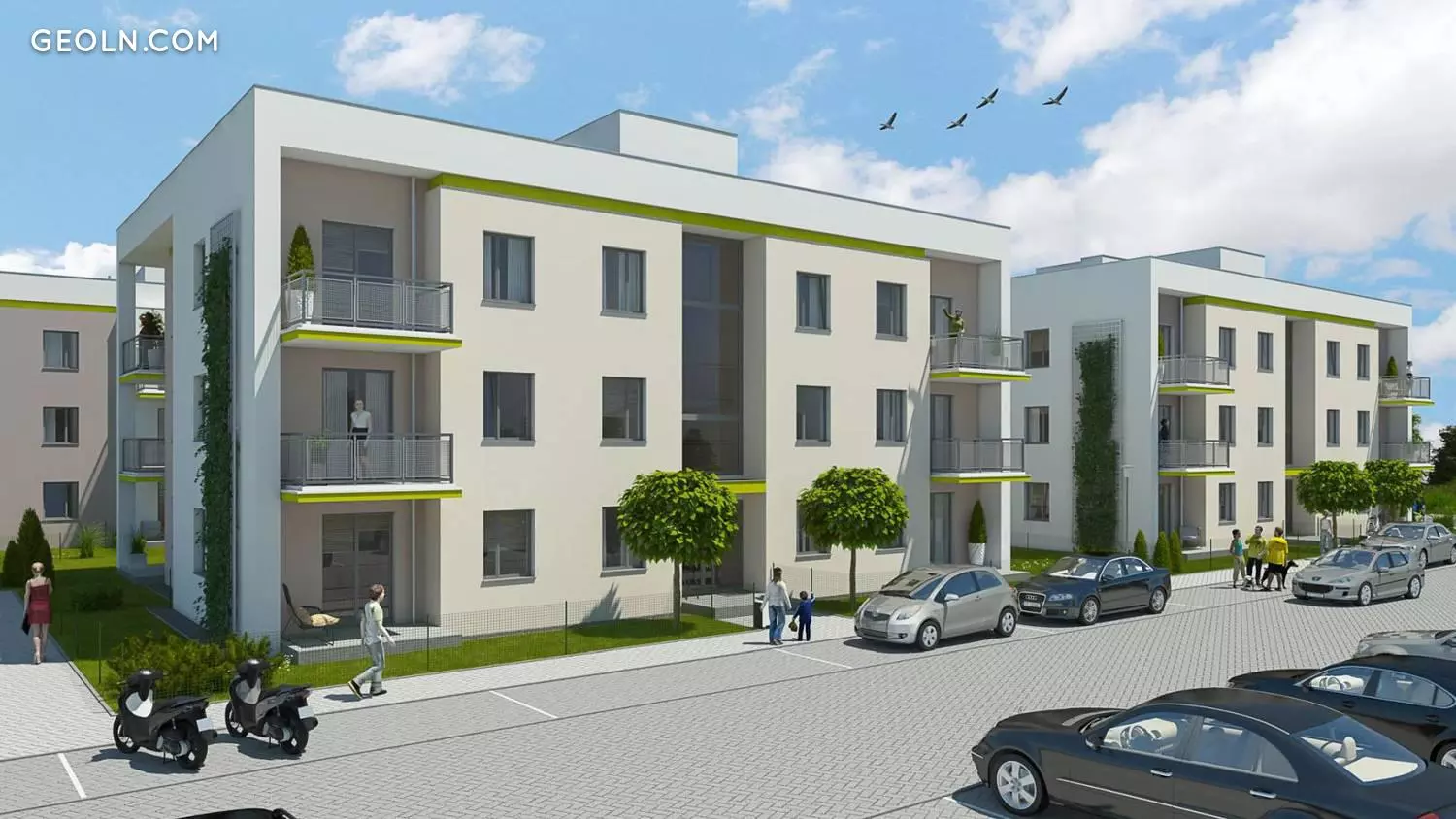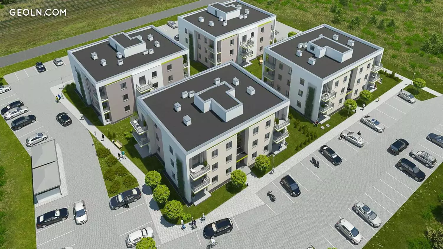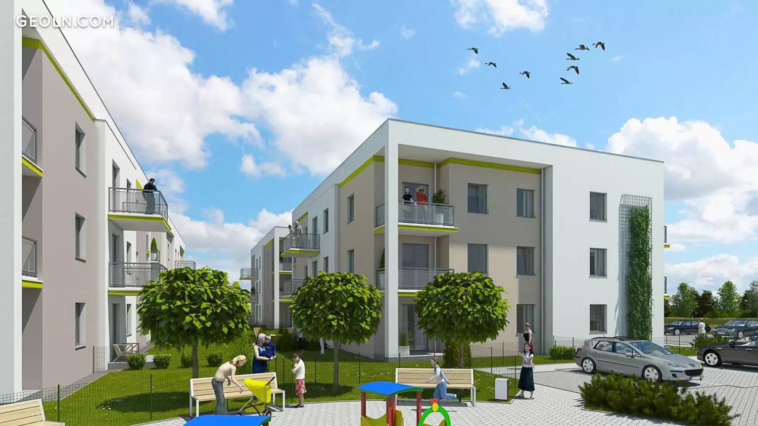 The intimate, phased Zielone Pobiedziska estate consists of five multi-family buildings and is located in Pobiedziska in the Poznań district.
