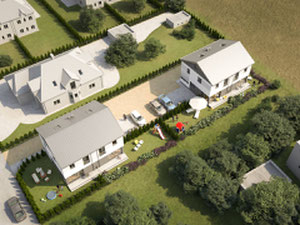 The investments consist of intimate two-story terraced houses. The buildings have a modern design, minimalist style and simple form. The façade was kept in light shades, large glazing and wooden elements were added. The architectural design of the investment corresponds to the gardens, plantings and elements of small architecture that create an arranged green space for relaxation.