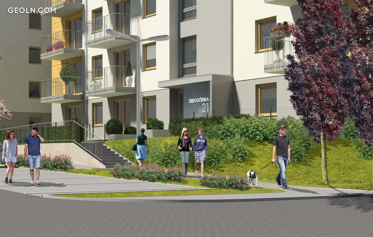 The estate is located at Dębogórska Street in the eastern part of Rumia, about 2.7 kilometers from the very center of which. It is implemented in a quiet area surrounded by greenery and with commercial, service, educational and recreational infrastructure, close to the main communication arteries connecting the area with other parts of the Tri-City.