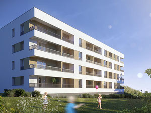 The entire project consists of 12 new apartments. The buildings have two above-ground storeys with a ground floor and no underground storeys.
