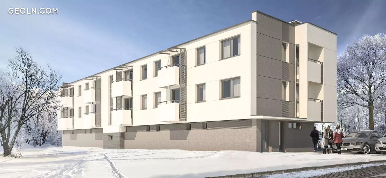 A single-staircase building without a basement. On the first floor there is a multi-car garage and utility rooms. On the second and third floors, there are 6 apartments with an area of approx. from 29m2 to 46m2, one and two rooms.