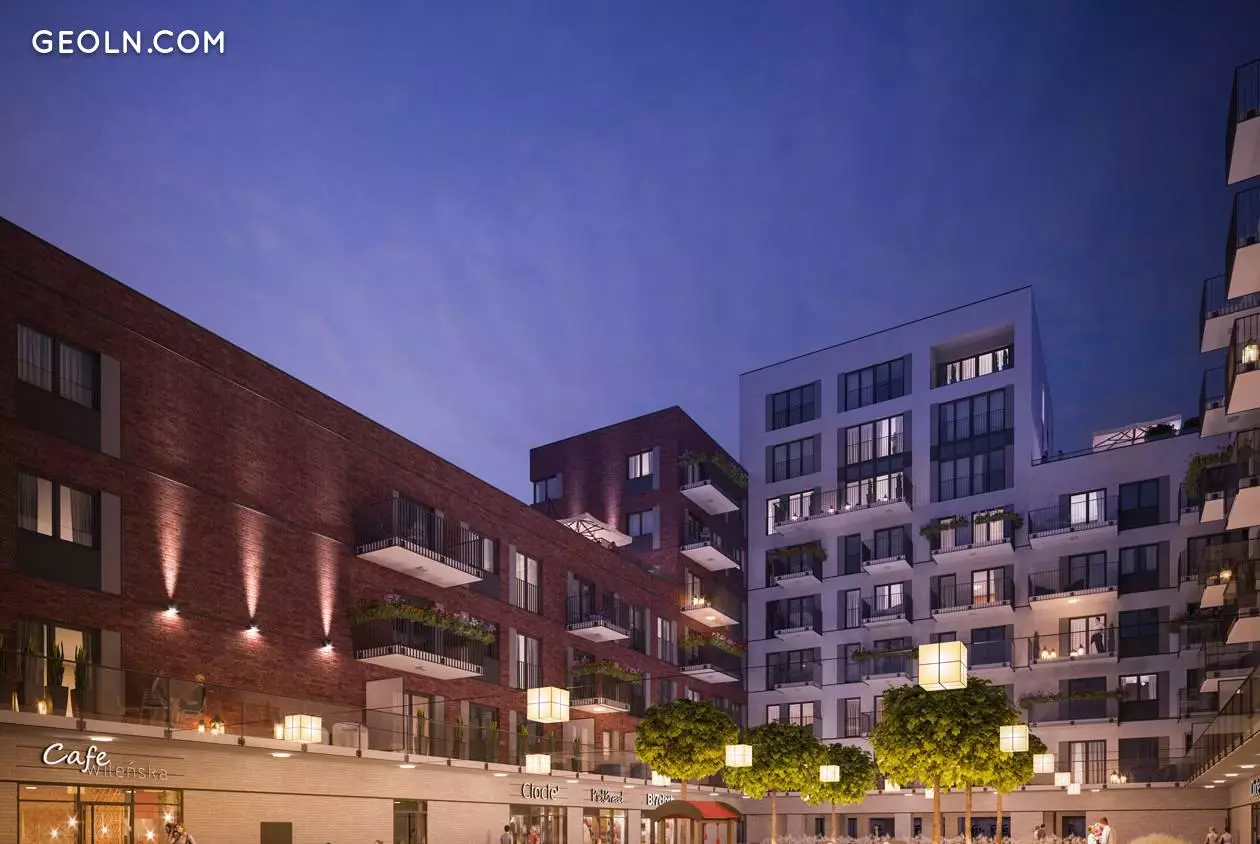 The investment was erected on the revitalized area of the former locomotive shed. Buildings of various heights - from 4 to 8 floors - and a cascade layout are designed in a modern style referring to the industrial character of the area, a simple shape was used, a combination of light plasters and red finishing brick, extensive glazing and partially irregular windows were added. On the ground floor there will be commercial and service space.