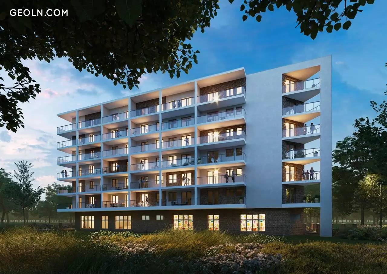 The investment was erected at 1 Oławskie Street, within the Bemowo-Lotnisko area belonging to the Warsaw district of Bemowo. It is about 8 kilometers away from the center of Warsaw. The vicinity of the investment is quiet, characterized by single-family houses, and has a well-developed educational, sports, service and communication infrastructure.