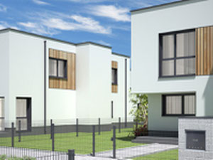 Buildings with a height of 2 to 4 floors are designed in a minimalist style. A simple body, light shades and contrasting color elements in the plaster façade finishes, as well as steel or concrete balcony railings were used.