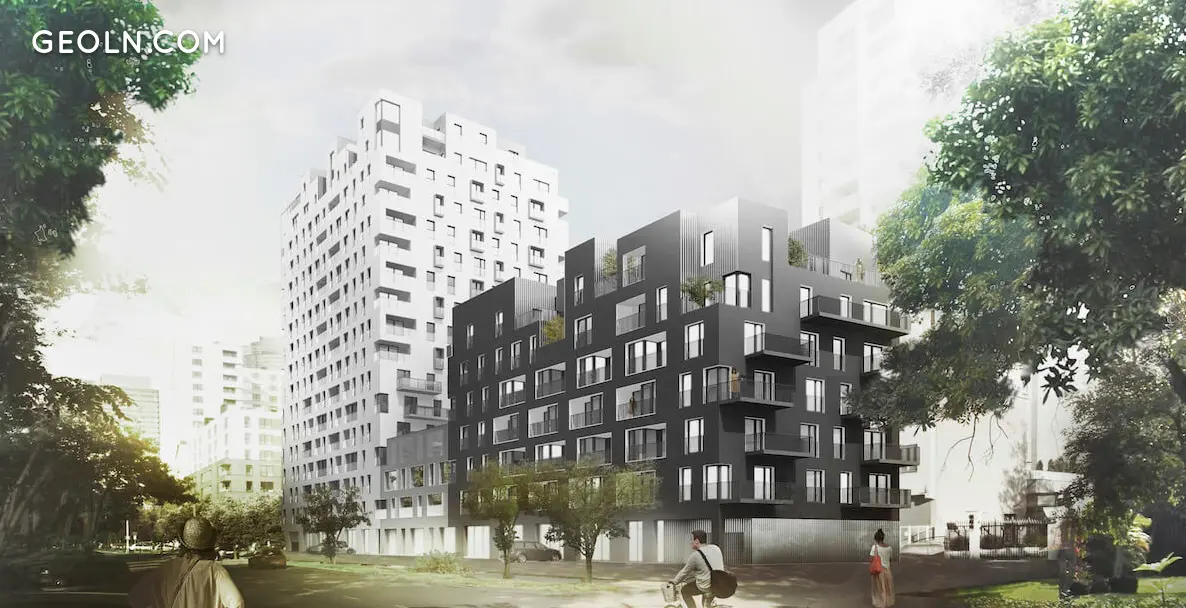 The modernist architectural design of the investment fits in with the business character of the district. The Apartments is a modern building of various heights. The upper part of the building is a 15-story skyscraper, the lower one has five floors. The colors of the building are subdued and complemented by large glazing, which provides additional lighting in the rooms.