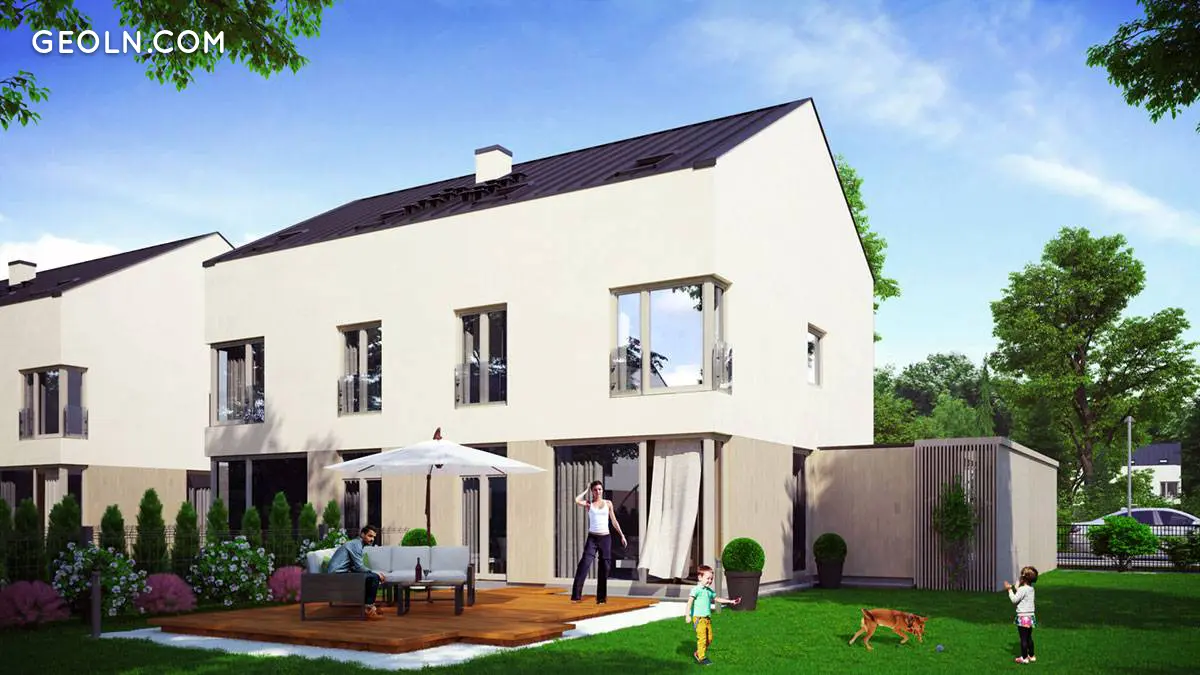 The Harmonium investment includes cozy five-room semi-detached houses with areas ranging from 167 to 169 square meters with gardens. The houses use energy-saving solutions, such as mechanical ventilation with recuperation, triple-glazed windows, and polystyrene insulation.