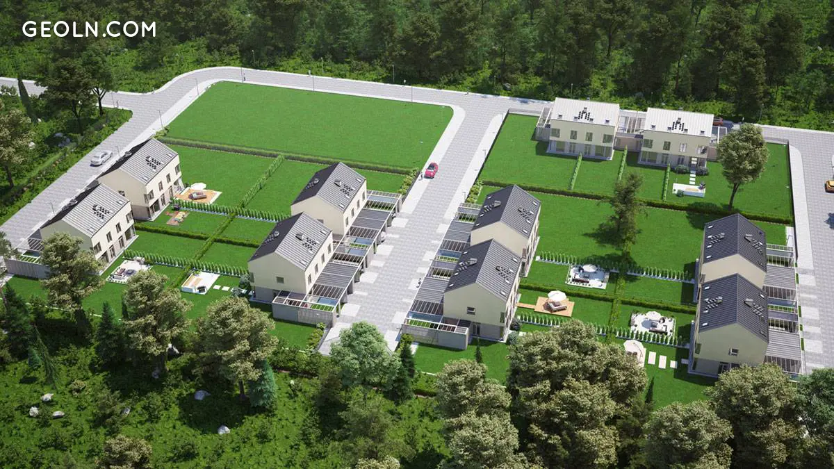 The investment area is fenced, monitored and secured 24/7. There are ground parking spaces for parking cars. There are pavements around the houses and well-kept lawns.