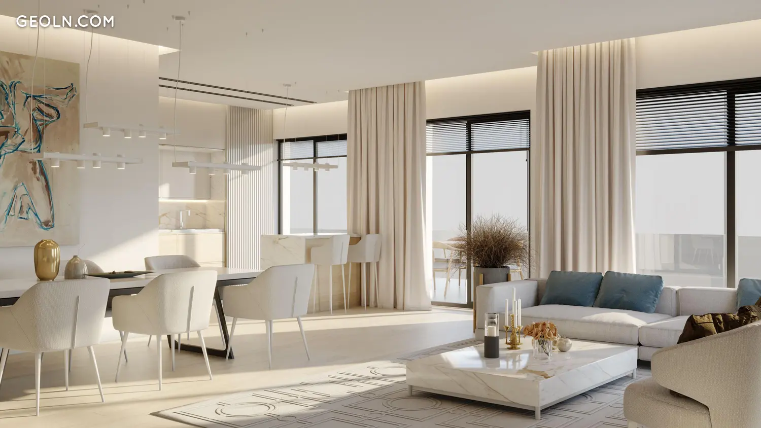 The best materials in light, warm colors with dark accents are used to cover floors and walls. The 3 meter high interiors offer generous comfort: bedrooms and lounges with air conditioning, remote controlled sockets and direct access to the elevator from the flat.