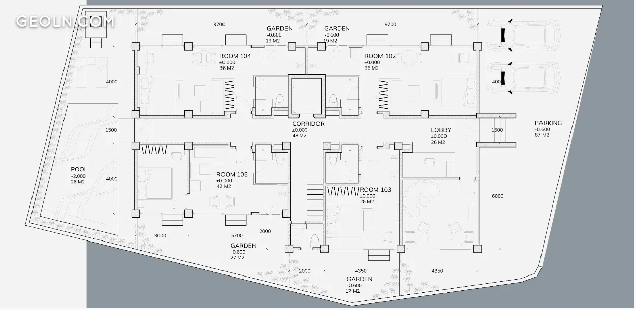 The apartment has 4 storeys, stylish interiors with aviation motifs, strong walls, modern bathroom and kitchen facilities. The view opens onto its own adjacent enclosed area. Built as a capital structure, it avoids common Indonesian accommodation issues and is designed for comfort in any weather. Additionally, it comes with a one-year renewable insurance policy, a 3-year guarantee for construction, and a 1-year guarantee for furniture and fittings.
