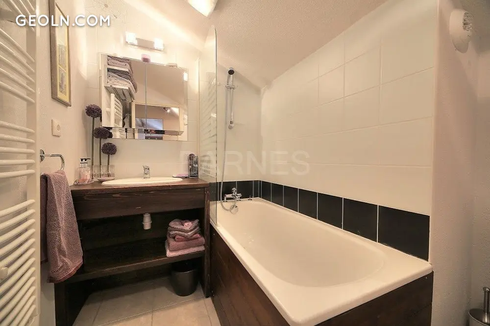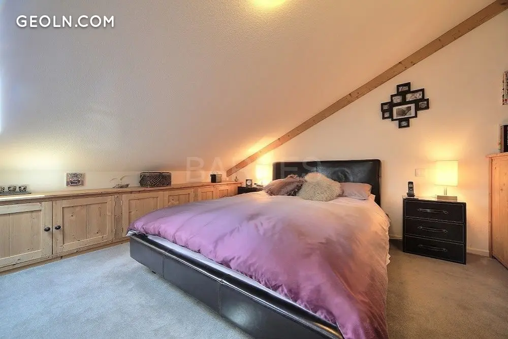 Located on the top (third) floor of a beautiful residence, this apartment has a beautiful panoramic view. Open kitchen and bright living room with access to the balcony.Two spacious bedrooms including one master bedroom with ensuite bathroom. The property is distinguished by its high quality finishes throughout, exquisite finishes and cozy atmosphere.The relaxation area and swimming pool in the residence are additional attractions of this wonderful apartment. It is close to the center of Saint-Gervais and provides easy access to the ski slopes.There is one underground parking space and an additional external parking space.
