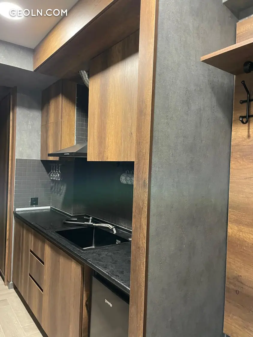 For sale is a 33.3 sq.m studio-type one-room, newly renovated, uninhabited apartment in New Gudauri, in the Redco complex "Four Seasons Gudauri", 3rd floor, block F1, the apartment is sold with furniture and appliances. It has quality renovation, a French balcony, is equipped with new furniture and appliances, central heating and hot water, and additionally, a Thermex (electric heater) is installed for hot water. The apartment has a ski depot and the building is close to the ski lift. The maximum capacity of the room is 4 people. Around – bars, cafes, shops, open and closed ski areas, a pool, and a casino – everything is within a 10–50 meter radius.