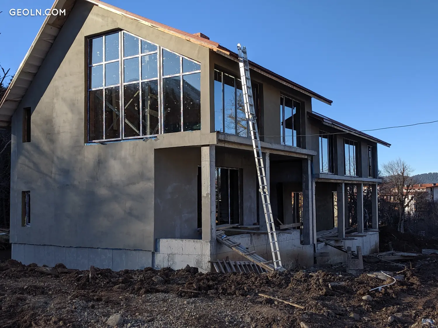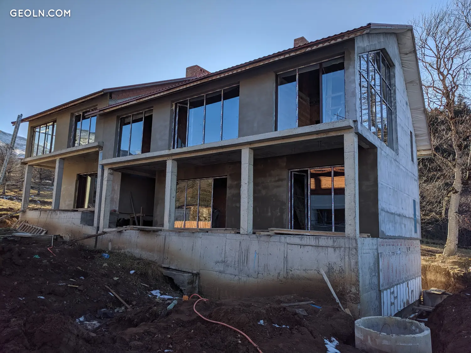Объект 1. Коттедж (2этажа) общей площадью 155 м². Готовностью 75%. Дом комфортный, уютный, построен из высококачественных материалов: стены выполнены из красного кирпича; межэтажные перекрытия ж/б плиты (монолитные); крыша-металлочерепица (200мм утепление), Стены (100 мм утепление и 50мм фундамент).