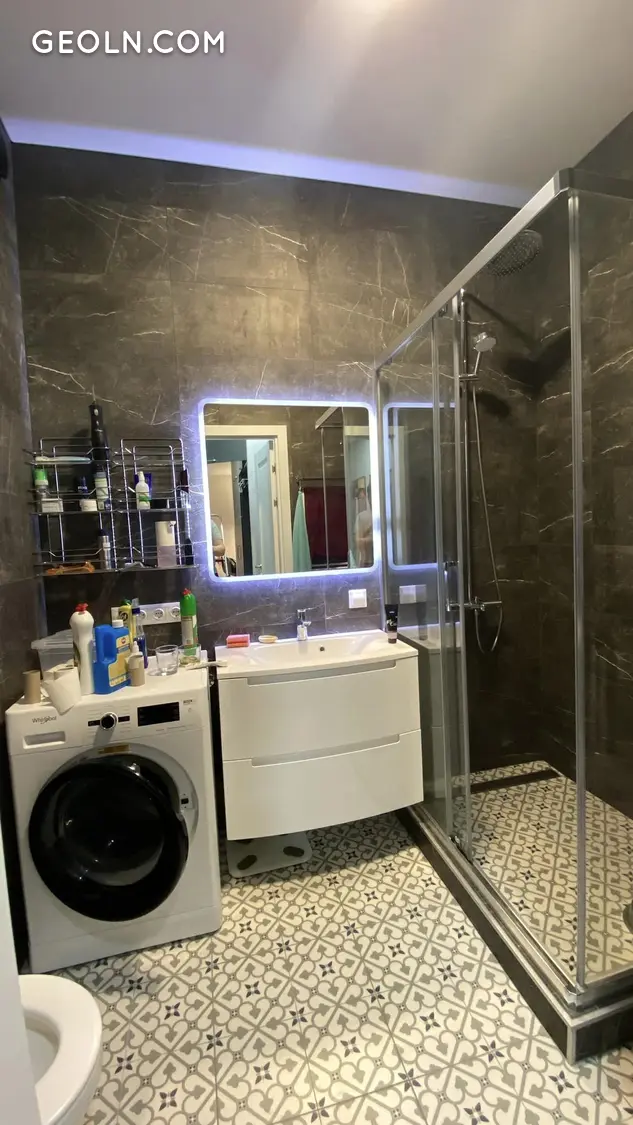 All Grohe sanitary ware, shower with thermostat. Illuminated mirror. Whirpool washing machine with dryer, which I use almost daily with pleasure.