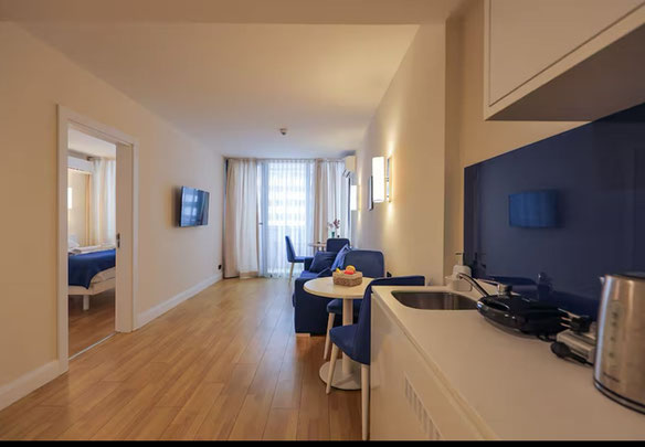 For sale is a one-bedroom apartment in a club house with a stunning view of the mountains and the sea.