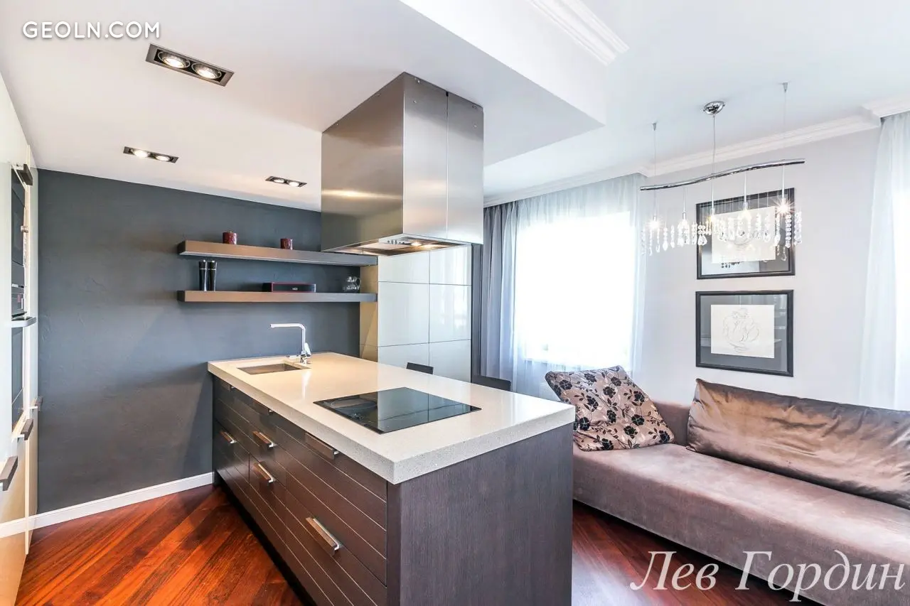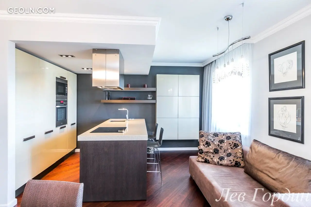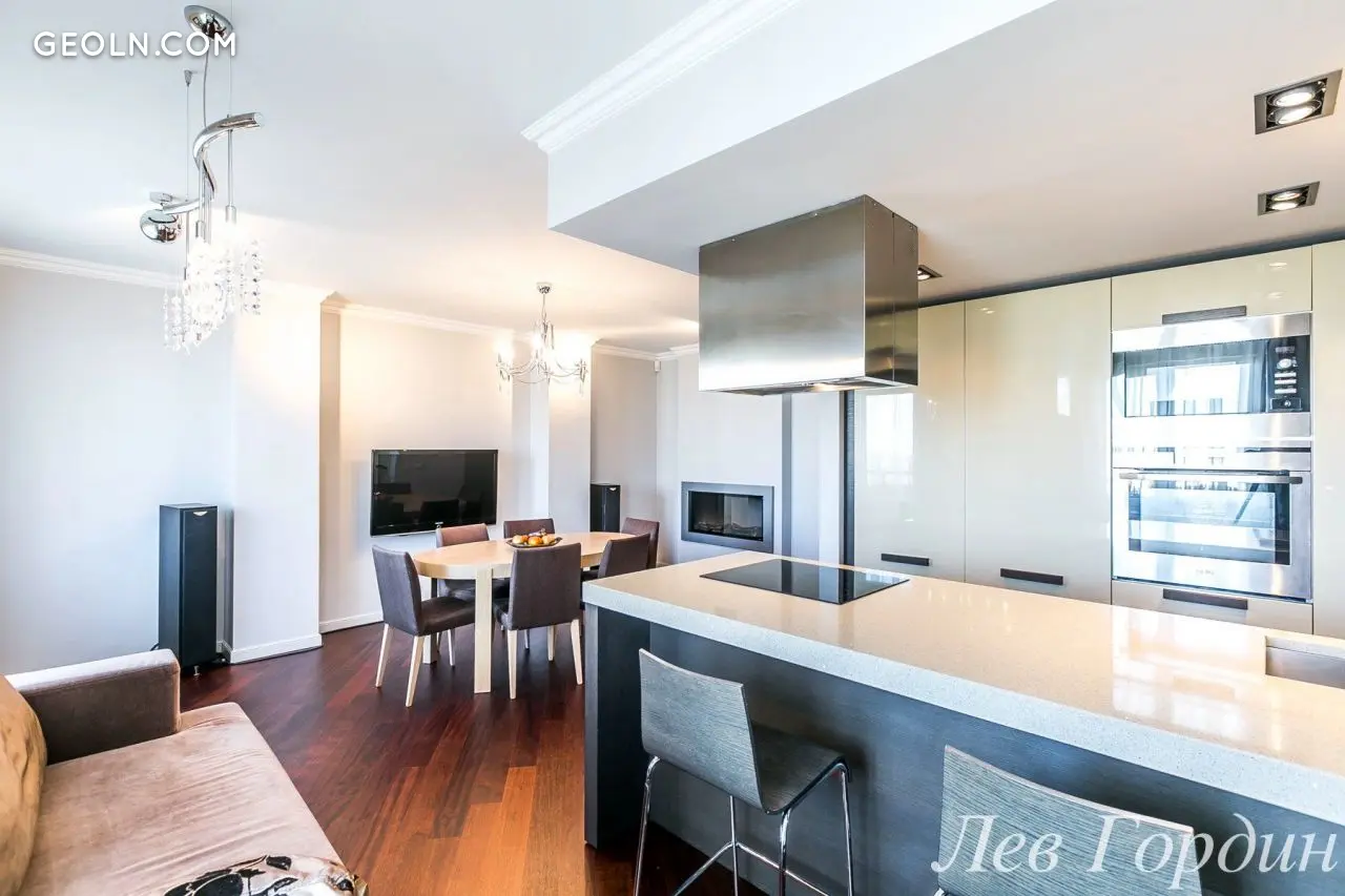 High-quality interior materials: natural merbau parquet and oak, solid doors, high-quality plumbing, Italian kitchen (two built-in Bosch refrigerators, built-in: oven, dishwasher, microwave - AEG, combined hob (induction + electric) - Electrolux, washing machine and clothes dryer - AEG).