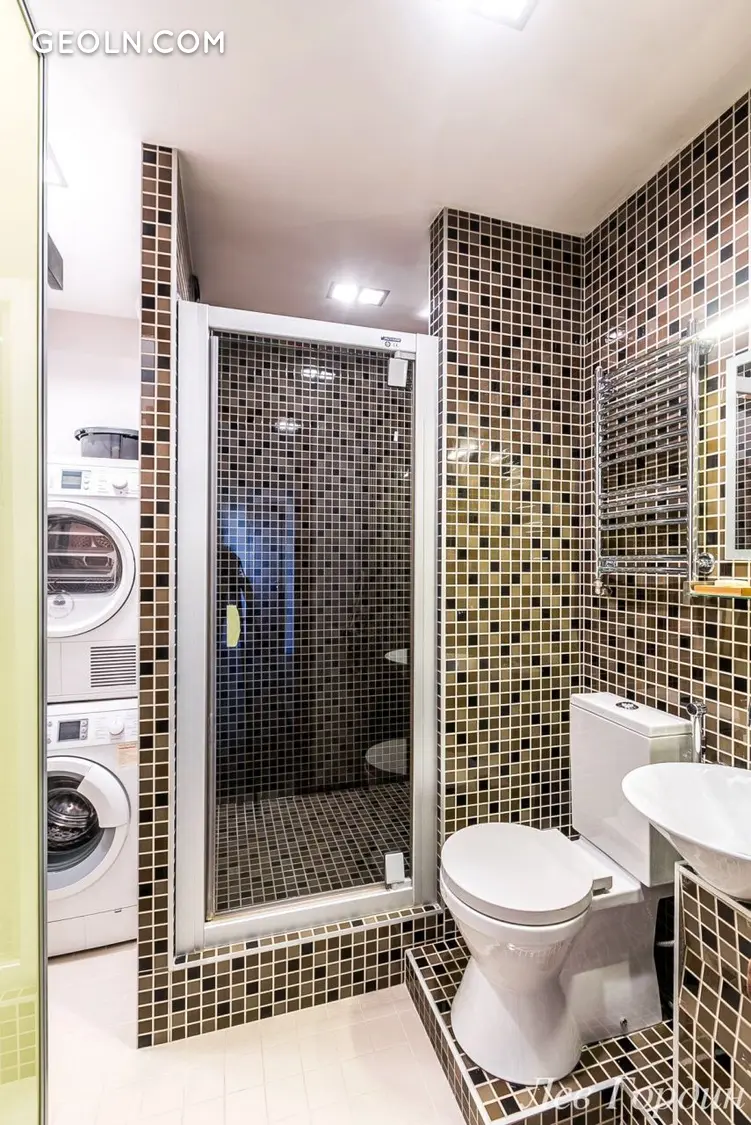 Good layout: entrance hall, guest bathroom with shower and laundry room, separate dressing room, spacious living room combined with a kitchen area (there is an island) and opening onto a balcony, master bedroom with access to a second balcony, spacious bathroom with bathtub, children's room bedroom, bedroom/study/dressing room.
