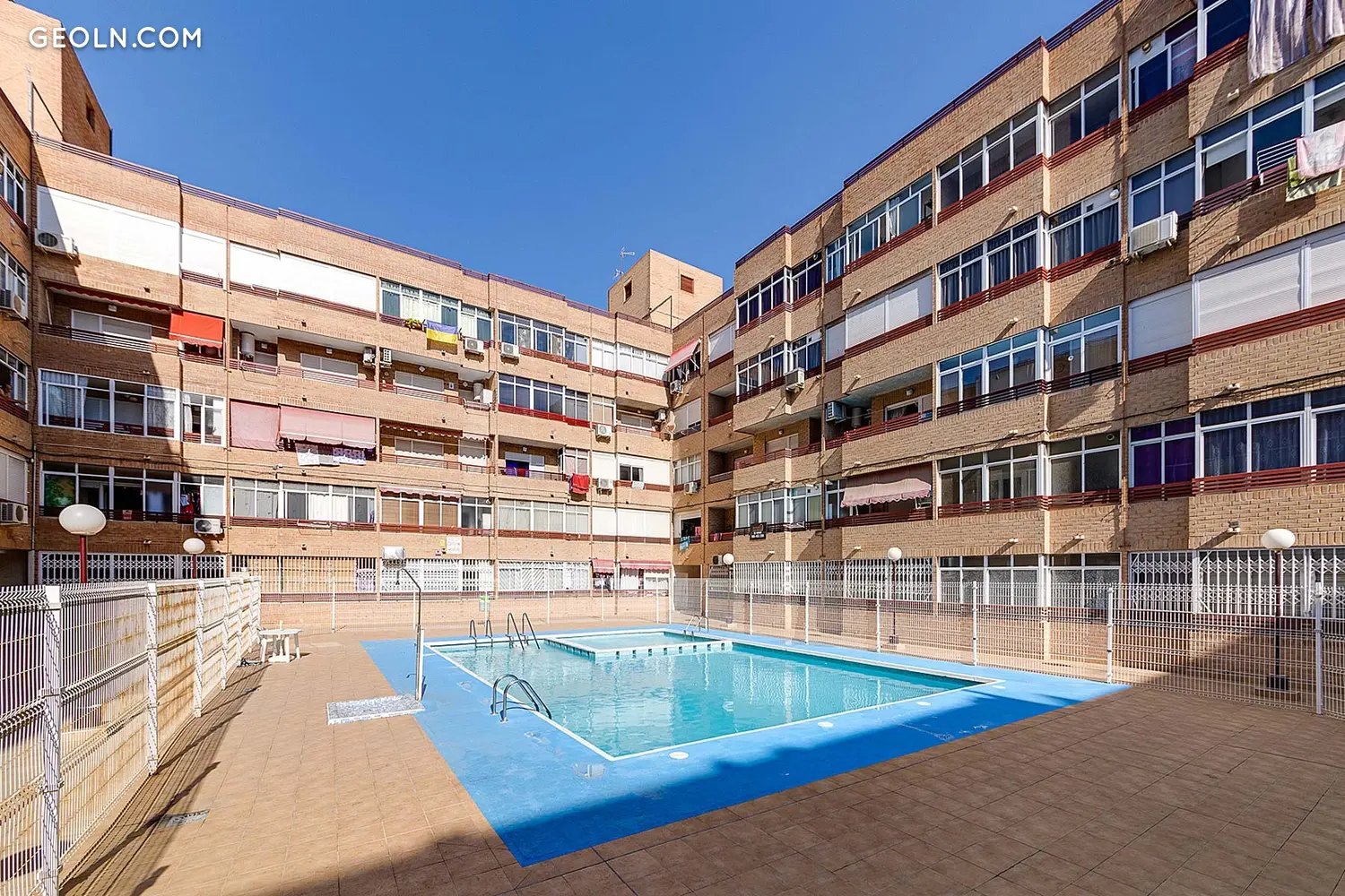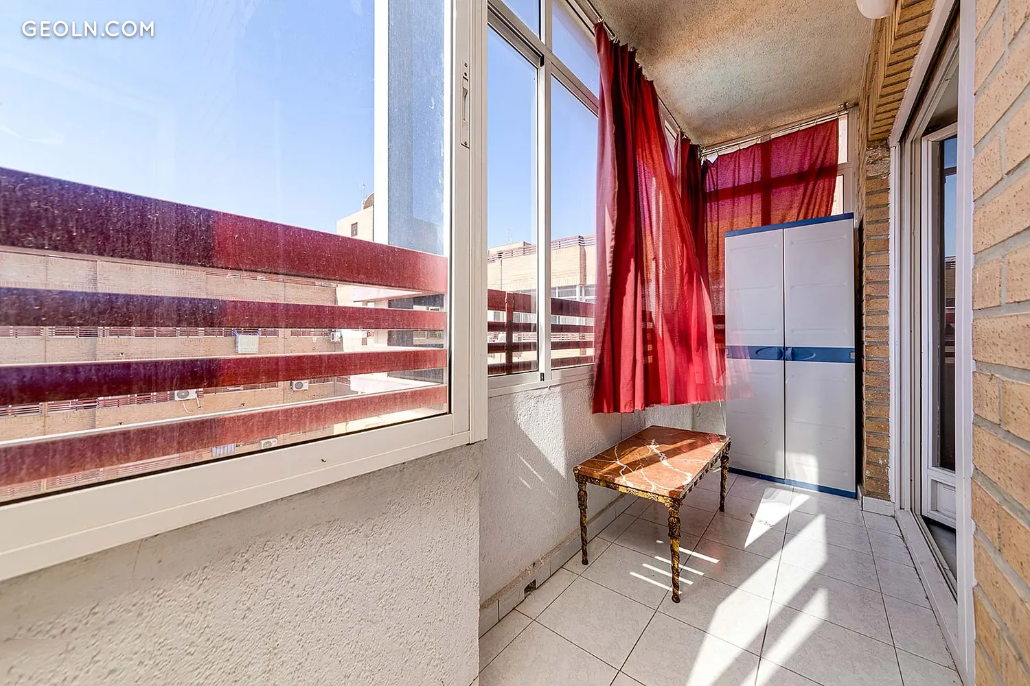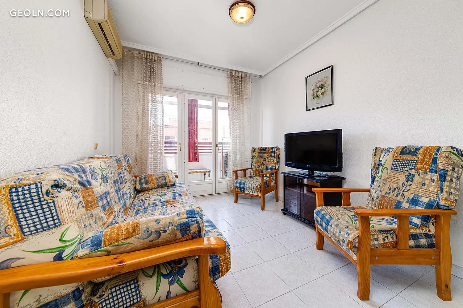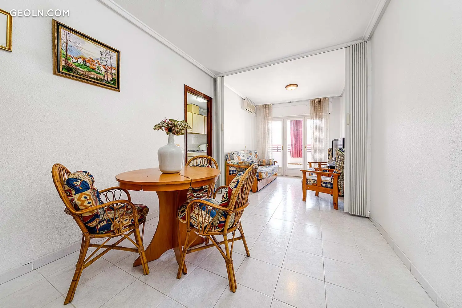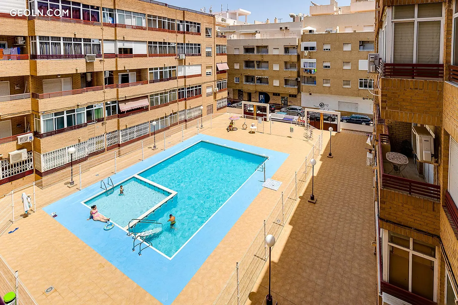 1 bedroom apartment located in Torrevieja, 1 km from the beach, in front of Parque del Molino. There are all kinds of amenities in the area: supermarkets, school, city bus, gym, restaurants, etc. It is also very close to the Habaneras shopping center and the Ozone entertainment center. The house is rented furnished and equipped with white goods and air conditioning. It has a closed garage in the basement, an elevator and a communal swimming pool.
