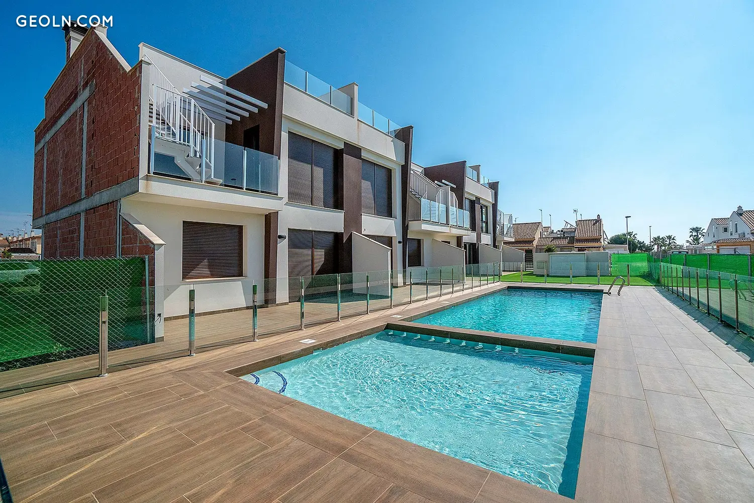 Residencial Belich II consists of charming 2 bedroom, 2 bathroom bungalows located in Lo Pagan, San Pedro del Pinatar. You can choose the ground floor with garden or the top floor with solarium. All houses have a modern design and meticulous memory of quality, including porcelain stoneware floors, PVC windows with motorized shutters and double glazing, aerothermal with 80-liter heater, pre-heater installation of air conditioning, a kitchen furnished and equipped with electrical appliances, or before installing an electric car charger, among other things. In addition, the residential area has parking for each house and a central public area with a garden and two community pools.