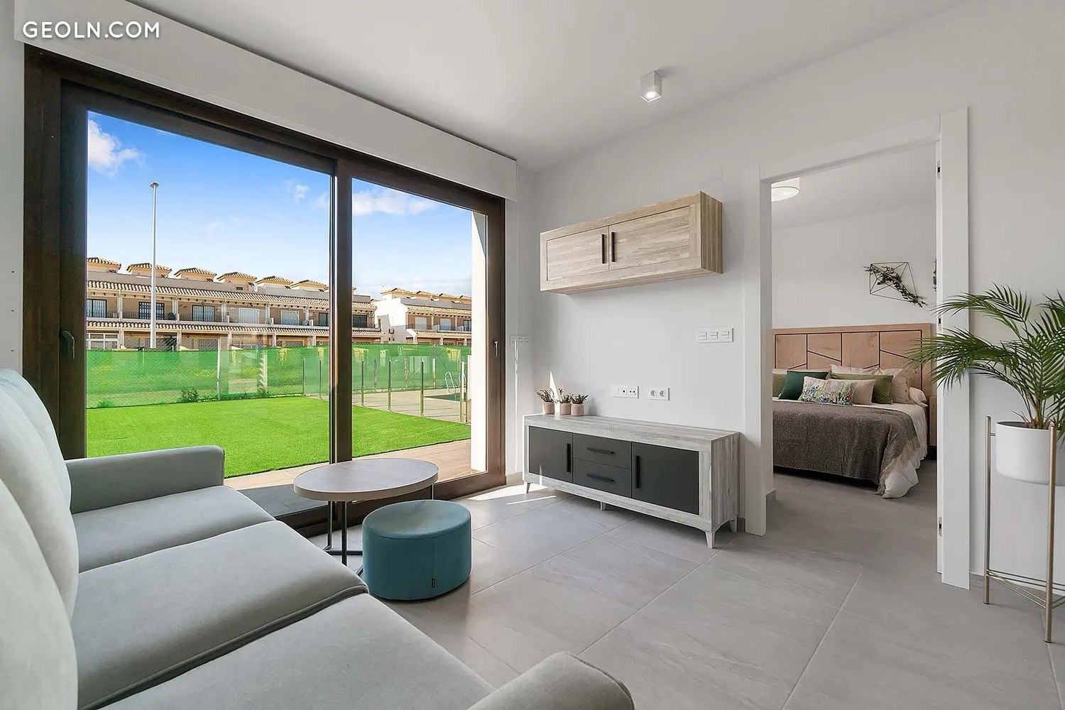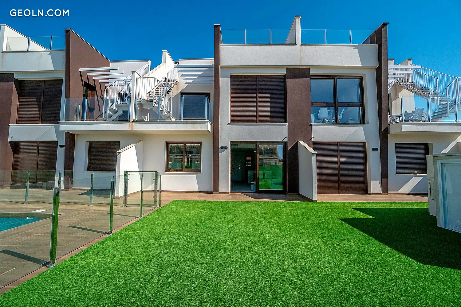 The complex consists of charming bungalows with 2 bedrooms and 2 bathrooms located in Lo Pagan, San Pedro del Pinatar. You can choose the ground floor with a garden or the top floor with a solarium. All houses have a modern design and meticulous memory of quality, including porcelain stoneware floors, PVC windows with motorized shutters and double glazing, aerothermal with 80-liter heater, pre-heater an air conditioning installation, a kitchen furnished and equipped with electrical appliances, or before installing an electric car charger, among other things. In addition, the residential area has parking for each house and a central public area with a garden and two community pools.