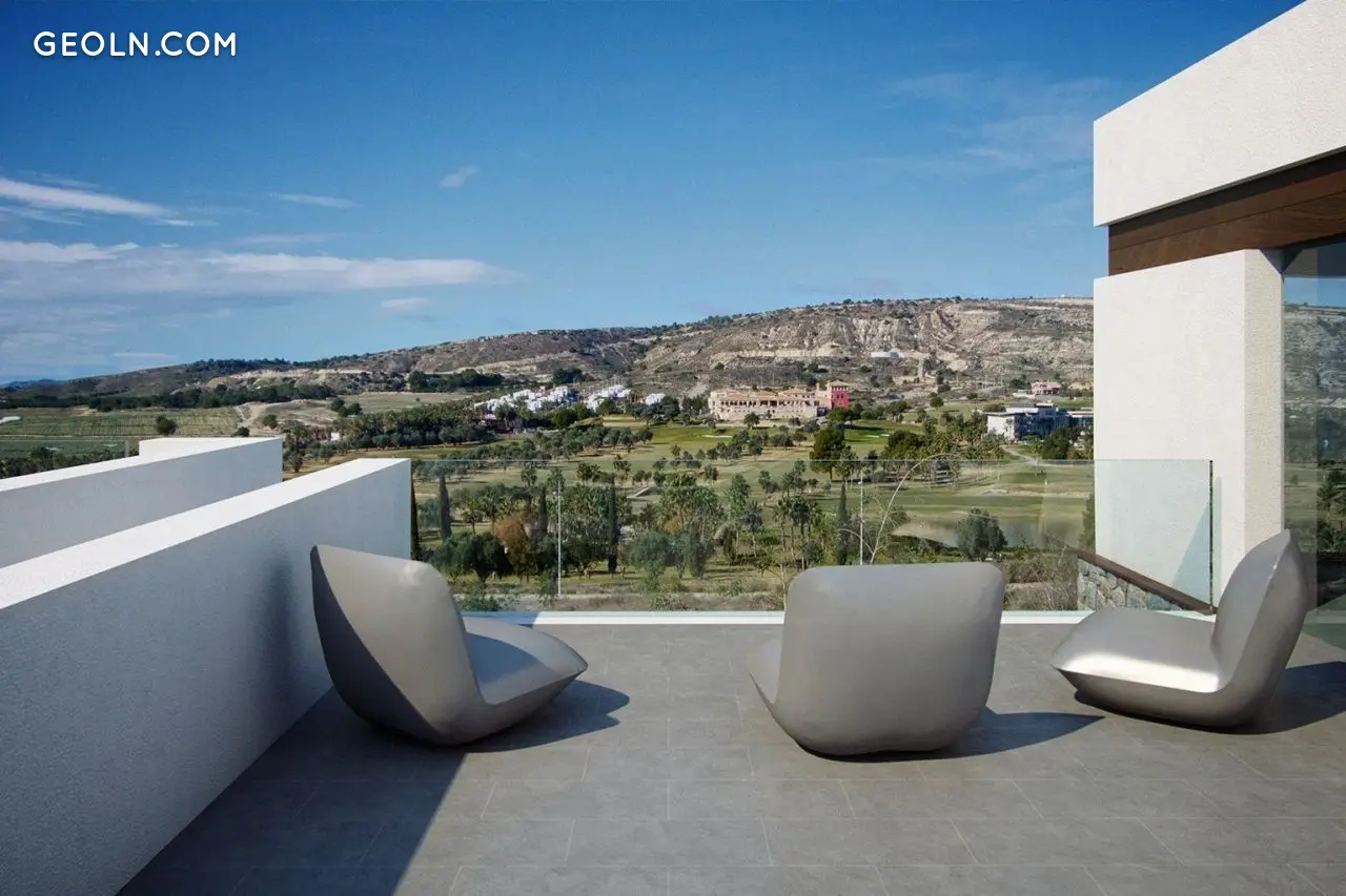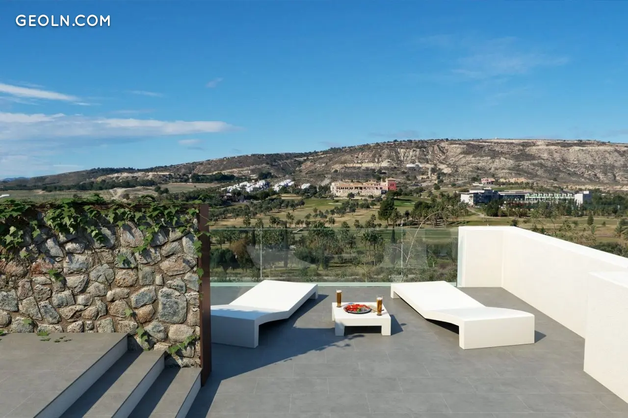 Magnificent villa in La Finca Golf, Algorfa, Alicante: 2 bedrooms, 2 bathrooms, living room and kitchen overlooking the golf course, terrace, solarium and garden area. The villa has pre-installation for air conditioning and alarm. Total area 152 sq. m. La Finca Golf is a quiet area with stunning views, located just a few meters from Montemar Castle, close to golf courses, tennis courts, and paddle tennis courts. An ideal place for sports. The area is well connected to the N-332 national road and the AP7 motorway, a short drive from the cities of Torrevieja, Los Montesinos, Guardamar.