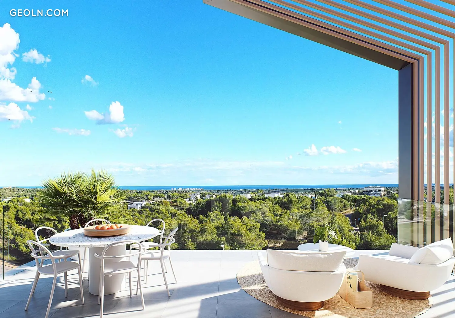 Mandarino Apartamentos — is a residential complex consisting of two blocks of apartments located in Las Colinas Golf, one of the best golf courses in the south of the Costa Blanca. Spacious 2 and 3 bedroom apartments, with the perfect combination of design and functionality, perfectly blending interior with exterior thanks to the continuity of spacious living rooms on large terraces that open ontoThere is a beautiful view of this natural environment. Particular attention is paid to the quality of the apartments for finishing and equipment using the highest quality materials, such as a built-in kitchen equipped with electrical appliances, extractor fan and osmosis system, designLuxury bathroom furniture and underfloor heating in bathrooms, aerothermal heating, metal joinery with shutters. . electric for night zones, home automation or ducted air conditioning, among others. The residential complex is complemented by spacious and cozy common areas with a swimming pool and gardens. In addition, the apartments on the ground floor have large gardens, while the penthouses have a private solarium with the possibility of a gazebo, a summer kitchen, a shower and a jacuzzi. Would you like to explore this fantastic residential complex? Contact Sunnier Homes!