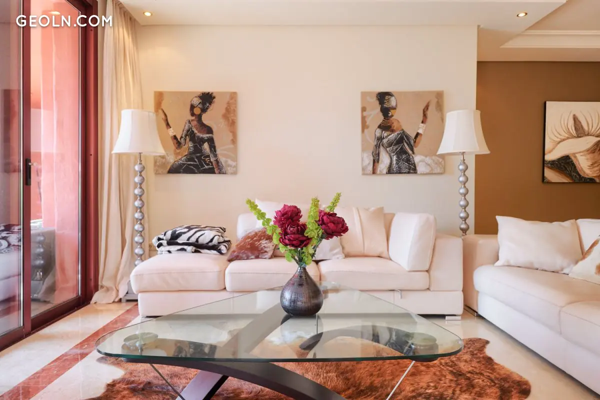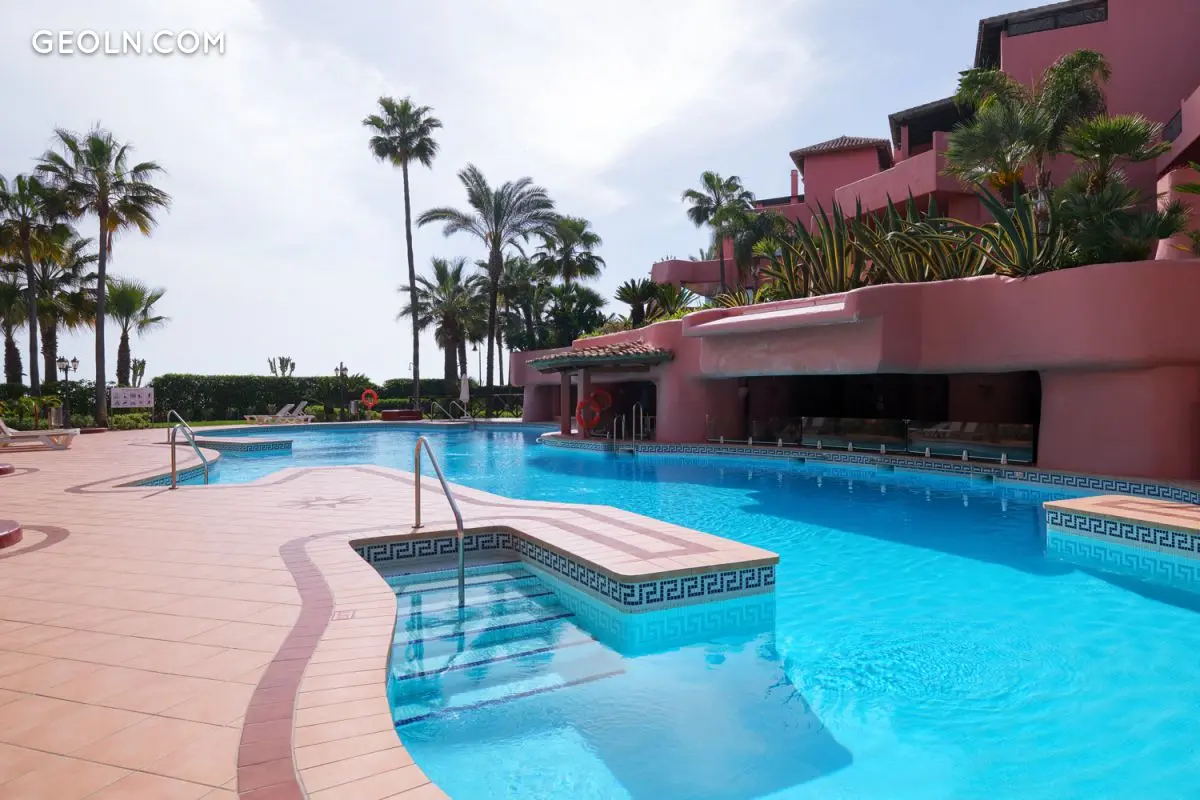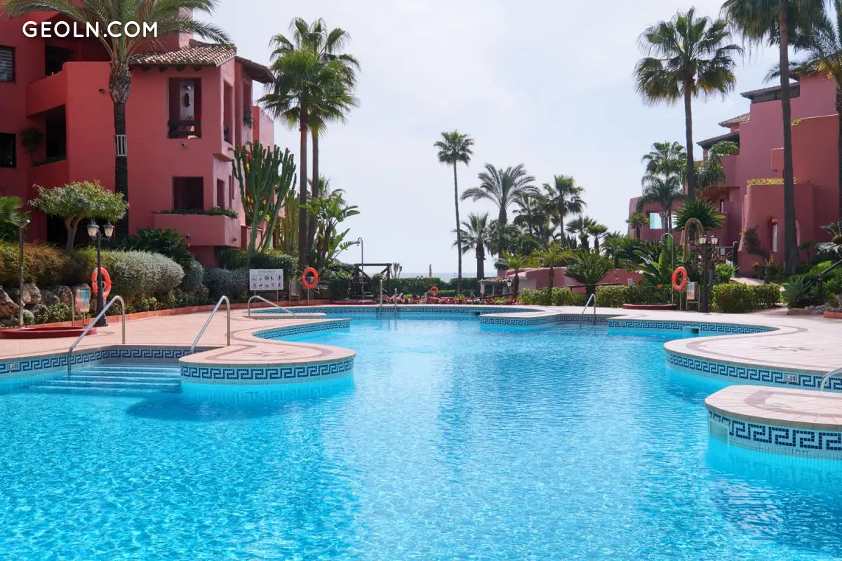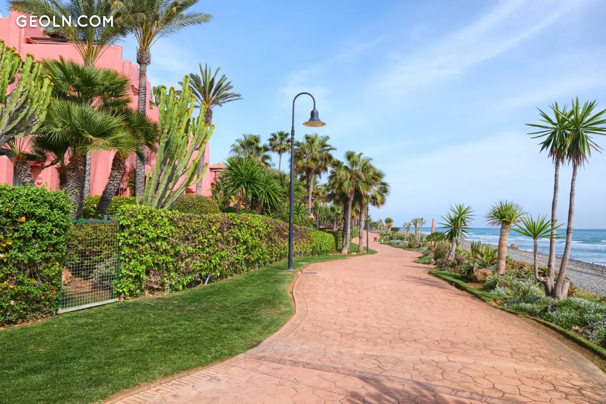 Near the beach restaurant Tiquitano and some famous shops. Approximately 10 minutes to downtown Estepona and Puerto Banus.