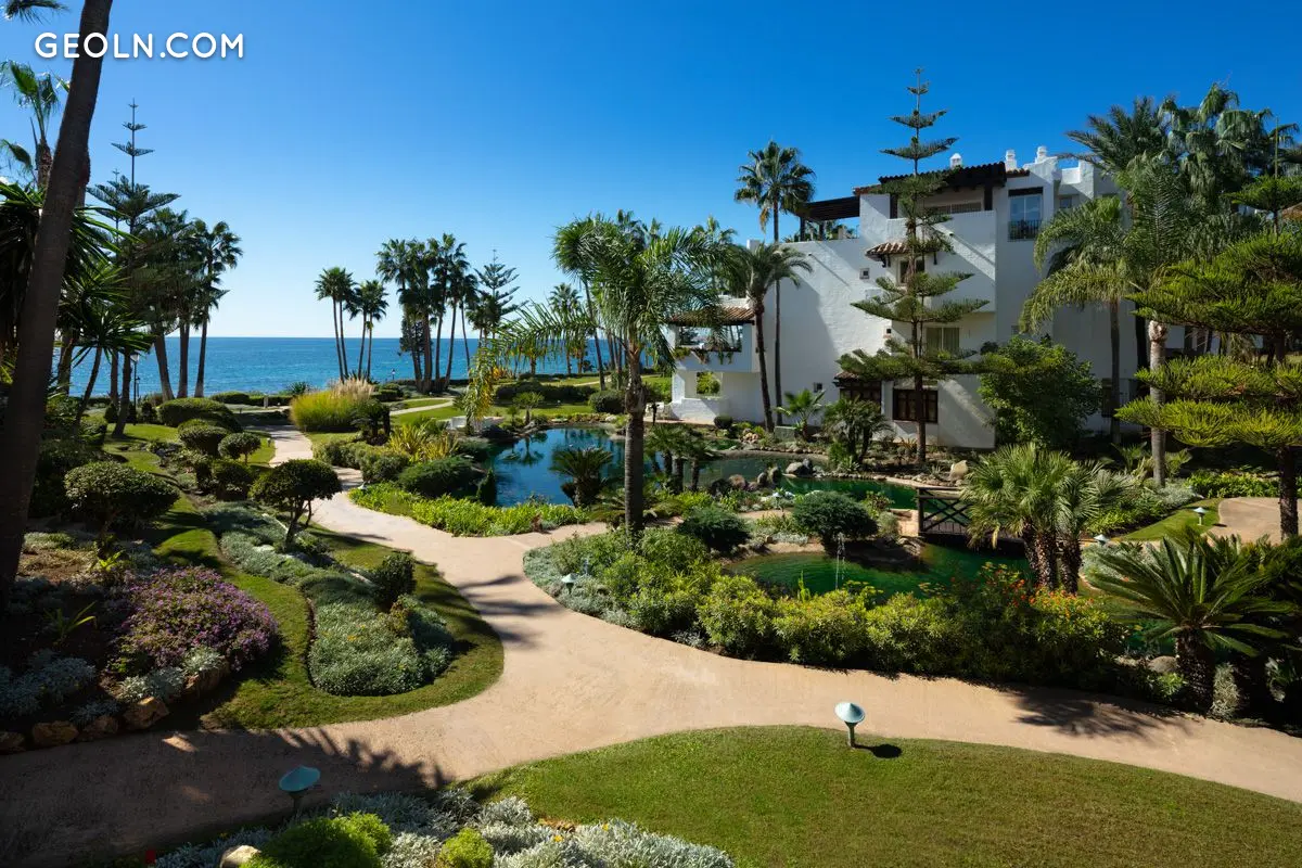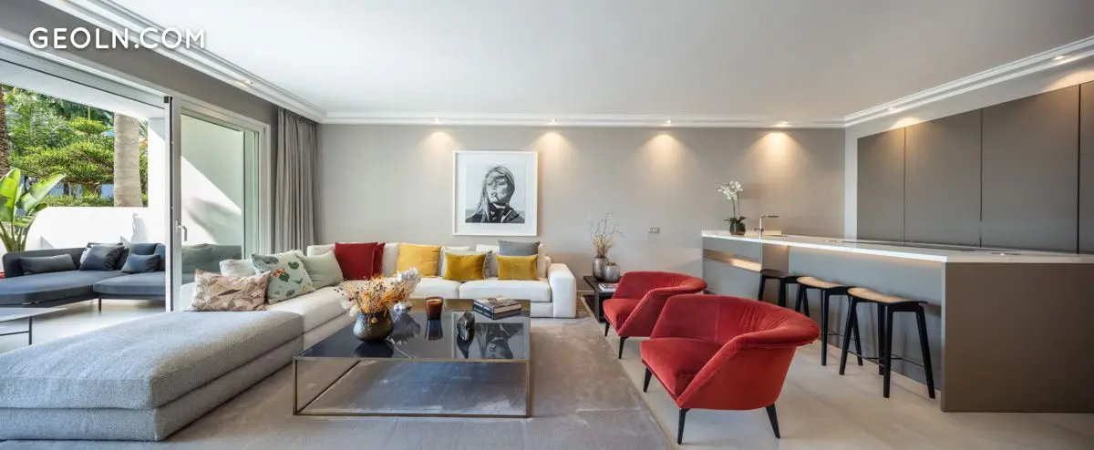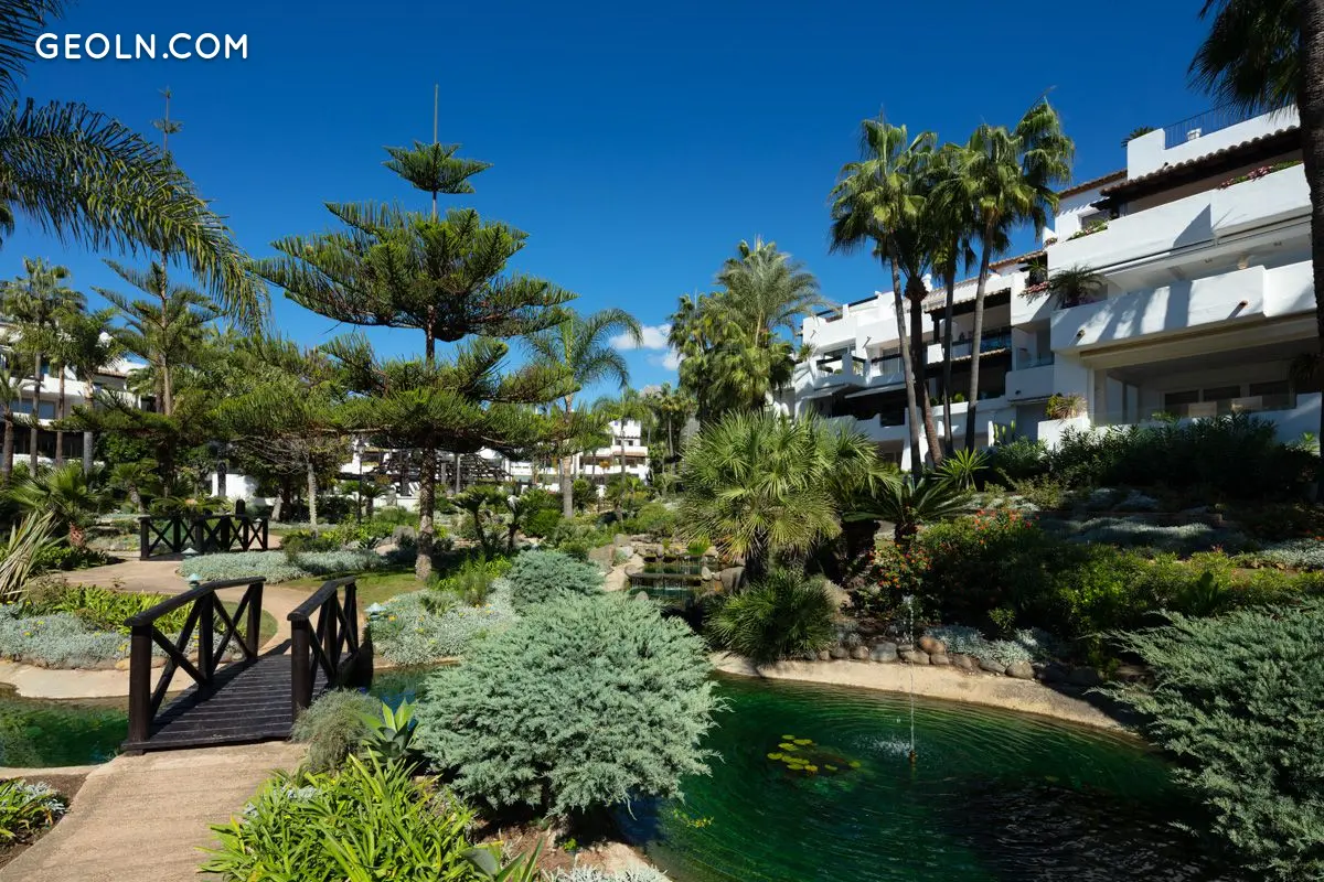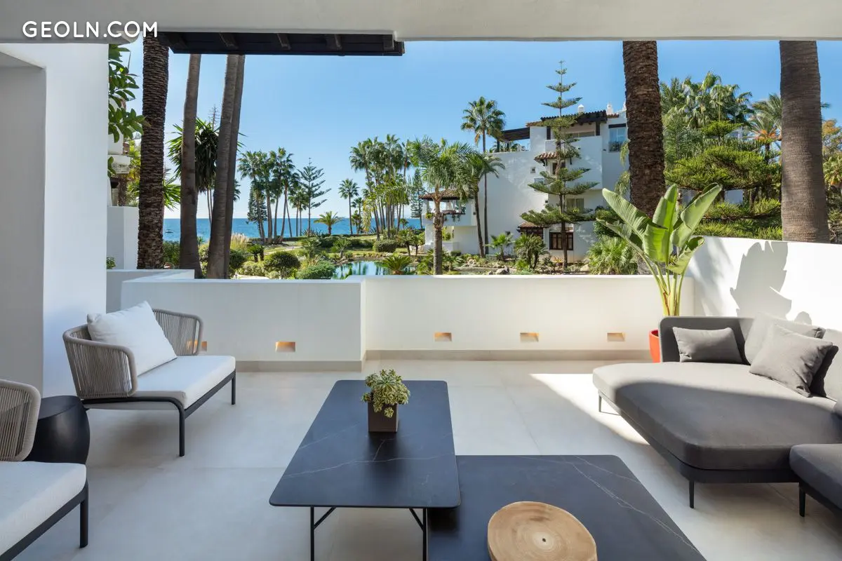 Located in Puente Romano, a luxury beach resort on the Golden Mile of Marbella, Dalia 1, a beautiful and completely renovated ground floor apartment. It overlooks the immaculate botanical garden and the Mediterranean Sea. The hotel has a large 40 m2 terrace where you can relax and watch the yachts sail by and listen to the sound of the waves crashing on the sand. Dalia 1 has direct access to the communal pool and is just a few steps from the beach. This hotel in Puente Romano has a stylish interior design in the main living areas and three en-suite bedrooms, with particular attention to quality