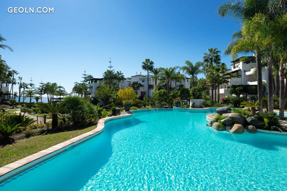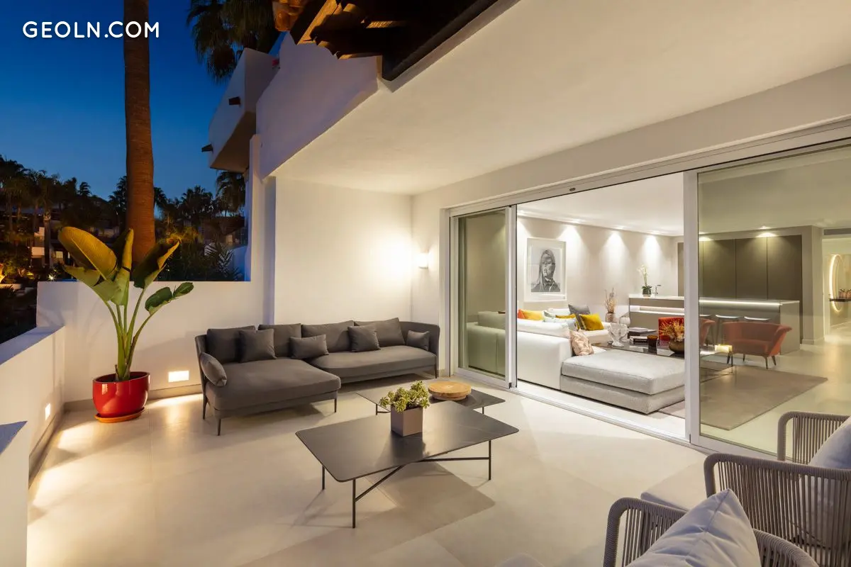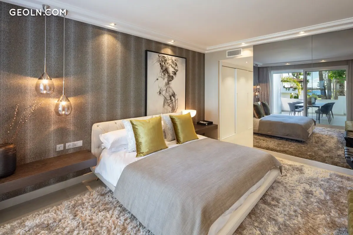 Located in Puente Romano, a luxury beach resort on the Golden Mile of Marbella, Dalia 1, a beautiful and completely renovated ground floor apartment. It overlooks the immaculate botanical garden and the Mediterranean Sea. The hotel has a large 40 m2 terrace where you can relax and watch the yachts sail by and listen to the sound of the waves crashing on the sand. Dalia 1 has direct access to the communal pool and is just a few steps from the beach. This hotel in Puente Romano has a stylish interior design in the main living areas and three en-suite bedrooms, with particular attention to quality
