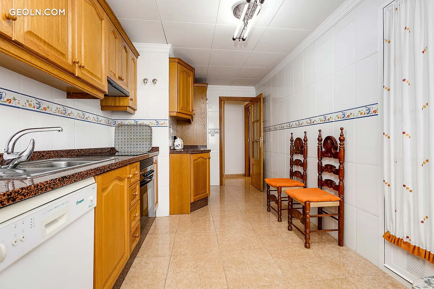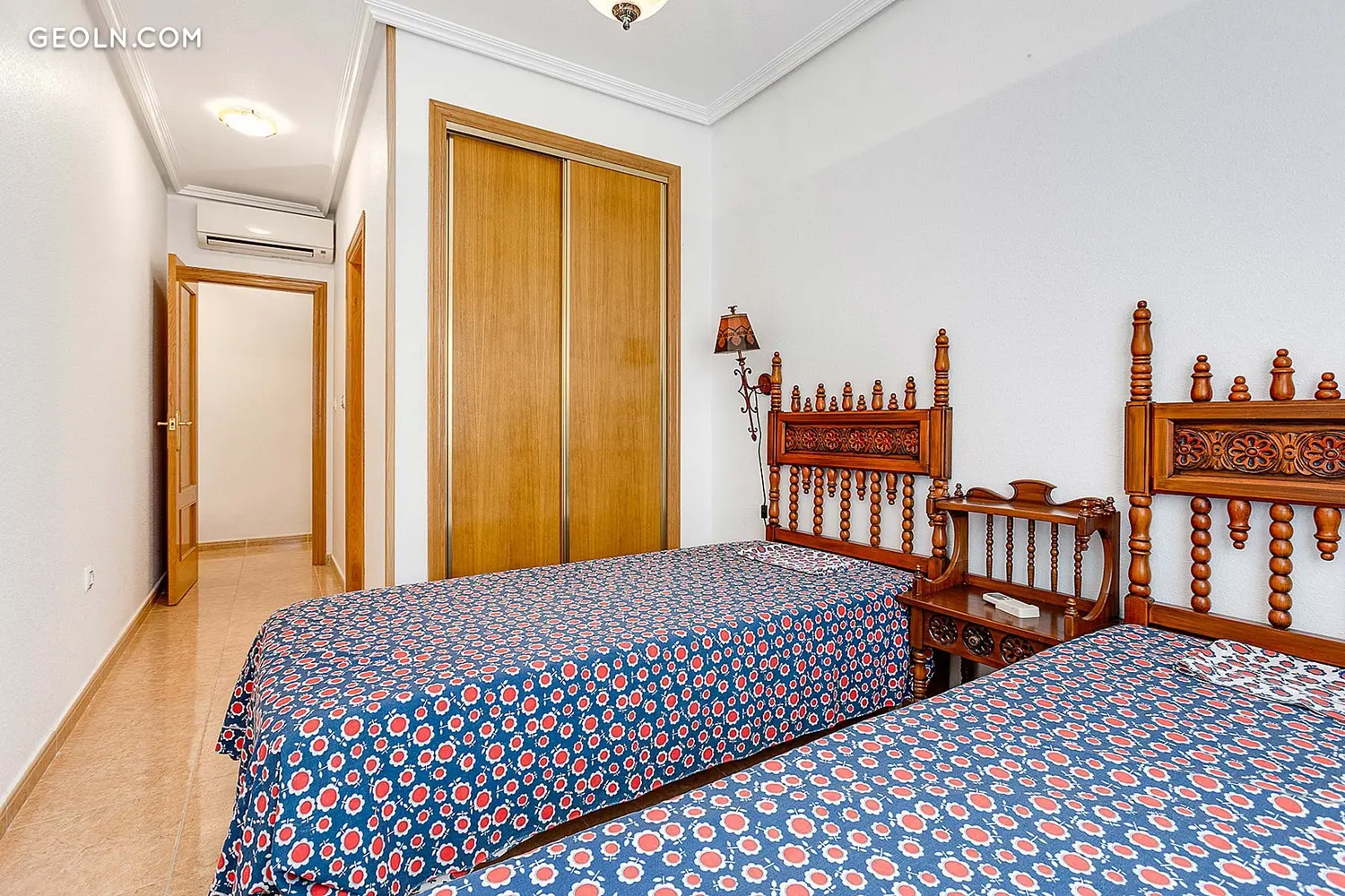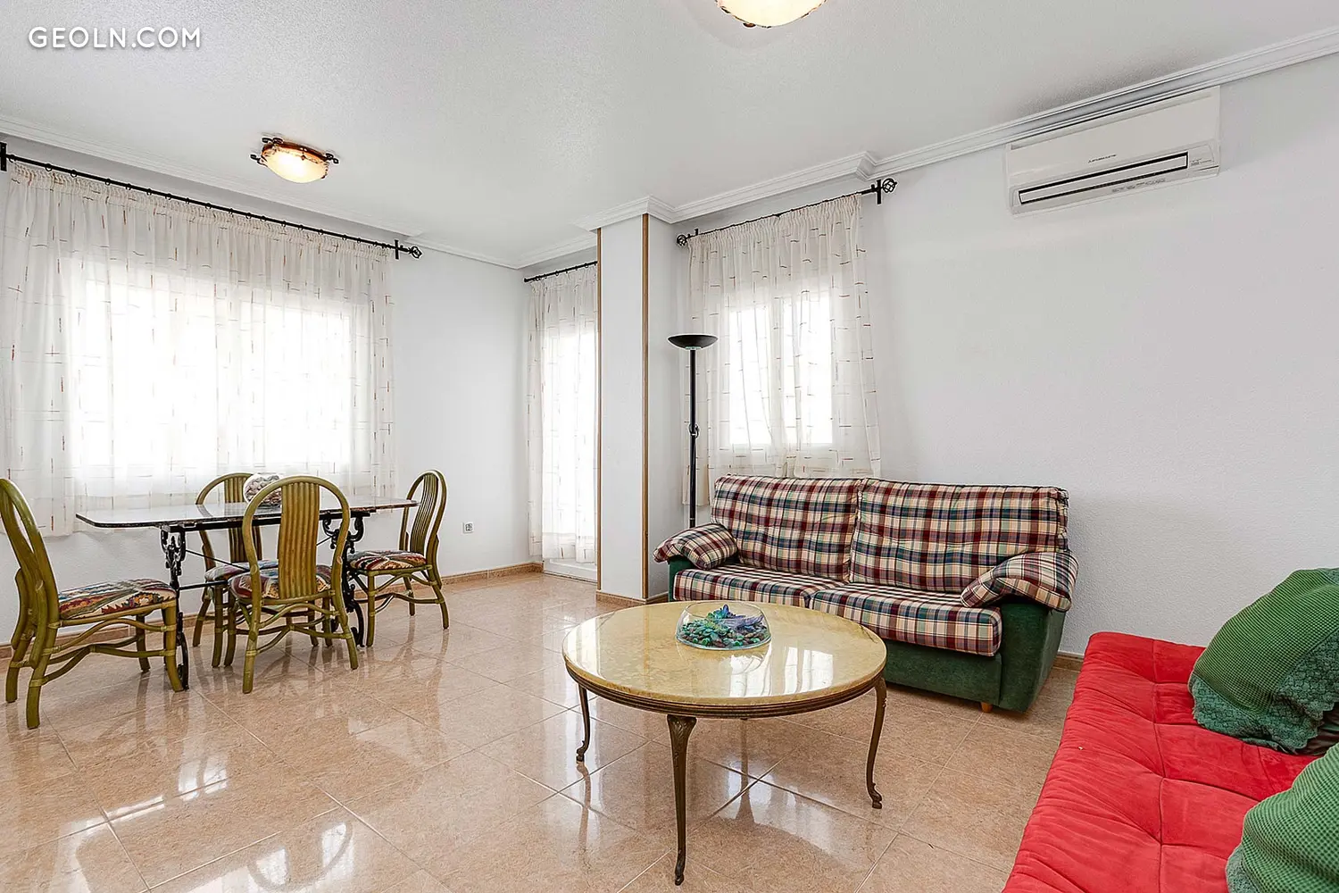 Spacious apartment with 3 bedrooms and 2 bathrooms, located in the center of Torrevieja, just 400 meters from the beach, surrounded by all amenities. The apartment is in excellent condition and is rented furnished and equipped with appliances and air conditioning, so you can enjoy it from the first day. The living room is spacious and bright, has a terrace and several windows. The kitchen is independent and very large, there is a laundry room. In addition, the house includes a covered garage in the basement. Communal costs are 505 euros per year.