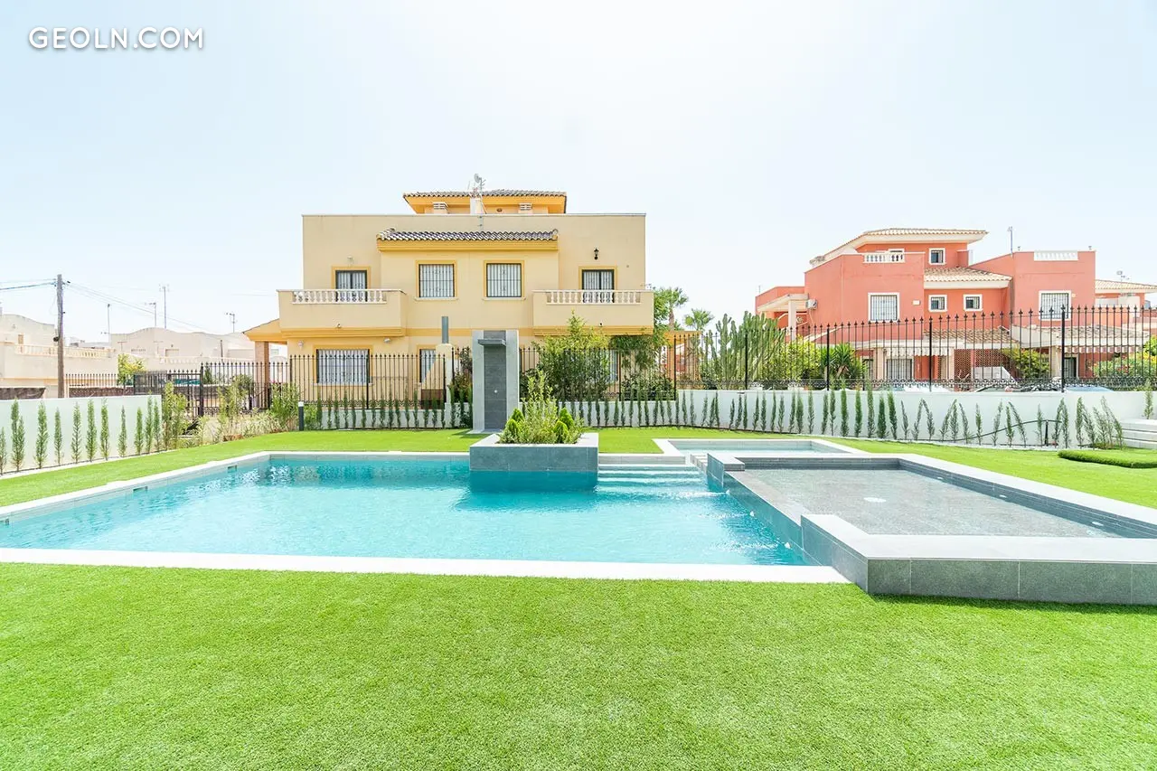 Balcón de la Laguna — is a residential complex consisting of bungalows located in Lago Jardín II — Torrevieja. Among its options you can choose between ground floor with garden or top floor with solarium. The houses on the ground floor have 3 bedrooms and 2 bathrooms, while the houses on the top floor let you choose between 2 and 3 bedrooms and 2 bathrooms. All houses are rented with a kitchen furnished and equipped with electrical appliances, aerothermal energy, electric shutters, pre-installation of air conditioning ducts, security door, bathroomsequipped with furniture, screens and underfloor heating, etc. The residential complex has well-maintained and spacious common areas, consisting of a parking lot, green areas and several public pools with a jacuzzi. ; Would you like to visit this residential building? Contact Sunnier Homes!