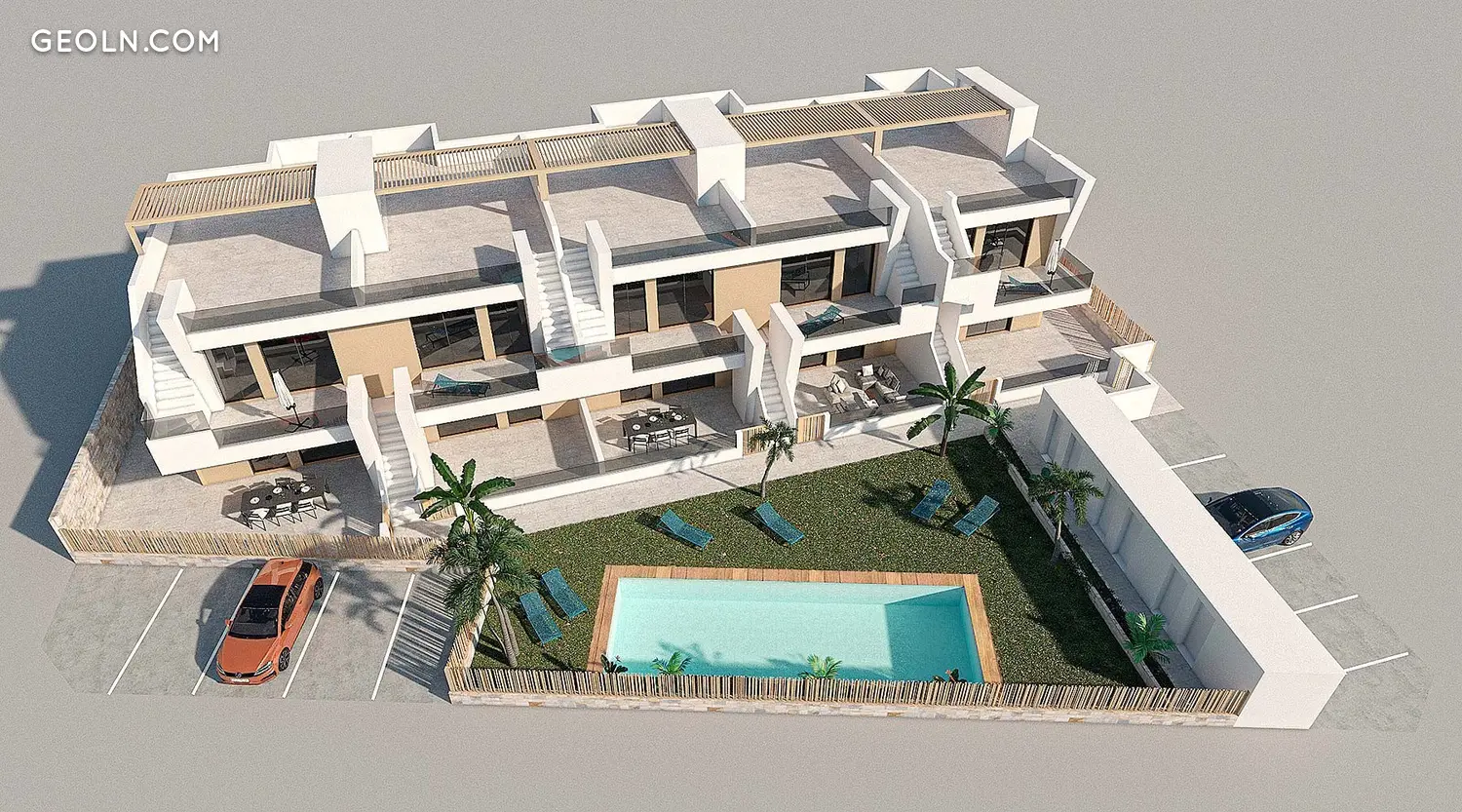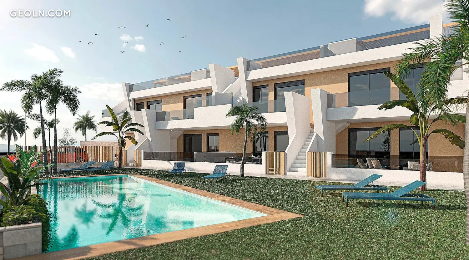 La Llana Beach — is a residential complex that seeks to optimize space, create functional and comfortable homes. It is located in Lo Pagan, San Pedro del Pinatar, 900 meters from the sea and very close to all the amenities that the area has to offer. La Llana VI consists of only 10 3 bedroom bungalows, allowing you to choose between ground floors with a terrace and garden and upper floors with a private solarium. The houses are designed with the idea of creating clean and orderly spaces that make the most of natural light. They come with kitchens furnished and equipped with appliances, and clever distribution to make the most of storage space. The bathrooms are equipped with furniture and underfloor heating, indoor and outdoor LED lighting, aluminum windows with electric shutters in the living room, an aerothermal system or air conditioning, among others.go. In addition, on the top floor of the house there is a private solarium equipped with a summer kitchen, shower, Jacuzzi pre-installation, artificial grass, electric barbecue and gazebo. The residential complex also has cozy common areas with a swimming pool and parking. Do you want to come and see the action? Contact Sunnier Homes!