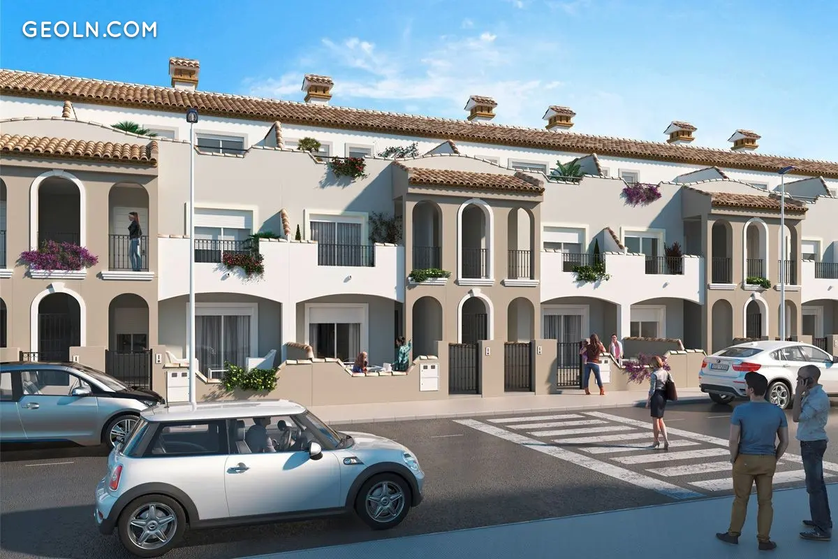 Pueblo Salado is a Mediterranean style residential complex located in San Pedro del Pinatar, on the Costa Calida. The houses are distributed on the ground floor with a garden or on the first floor with a terrace. This will allow you to choose between 2, 3 or 4 bedrooms, in a warm and welcoming style, in an area that has all kinds of amenities that make it ideal for both year round living and permanent living. Homes come with a furnished and equipped kitchen, exterior lighting, drawer cabinets and bathroom screens.