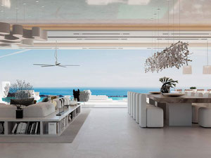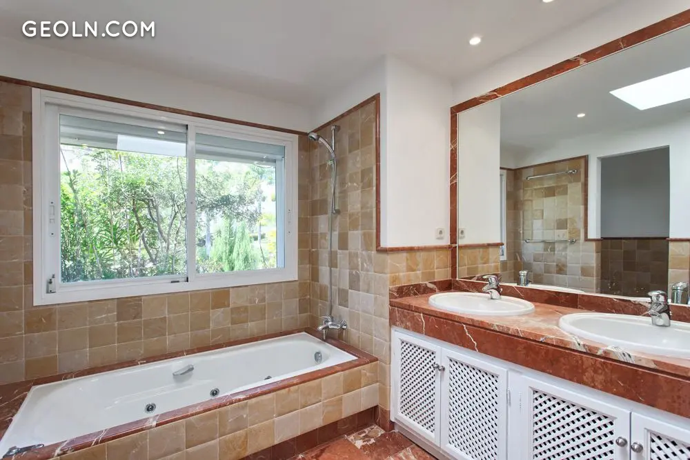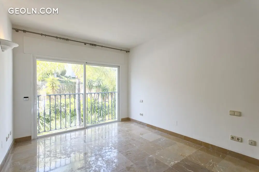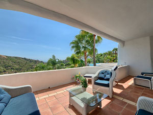 One of the largest penthouses in the complex, bright corner apartment, with several terraces overlooking the sea, mountains and the golf course.Options: Floor heating (not in the bedrooms), electric shutters, fireplace, jacuzzi, fully equipped kitchen, upstairs terrace, possibility to install an elevator.