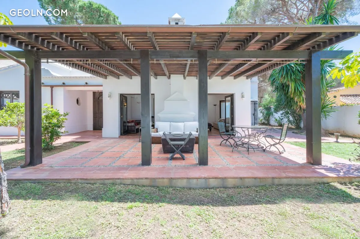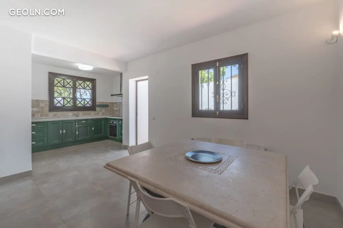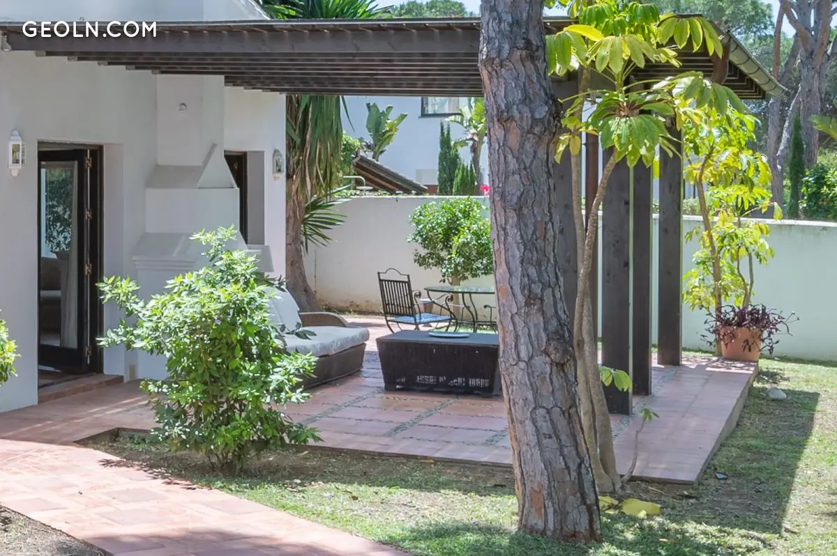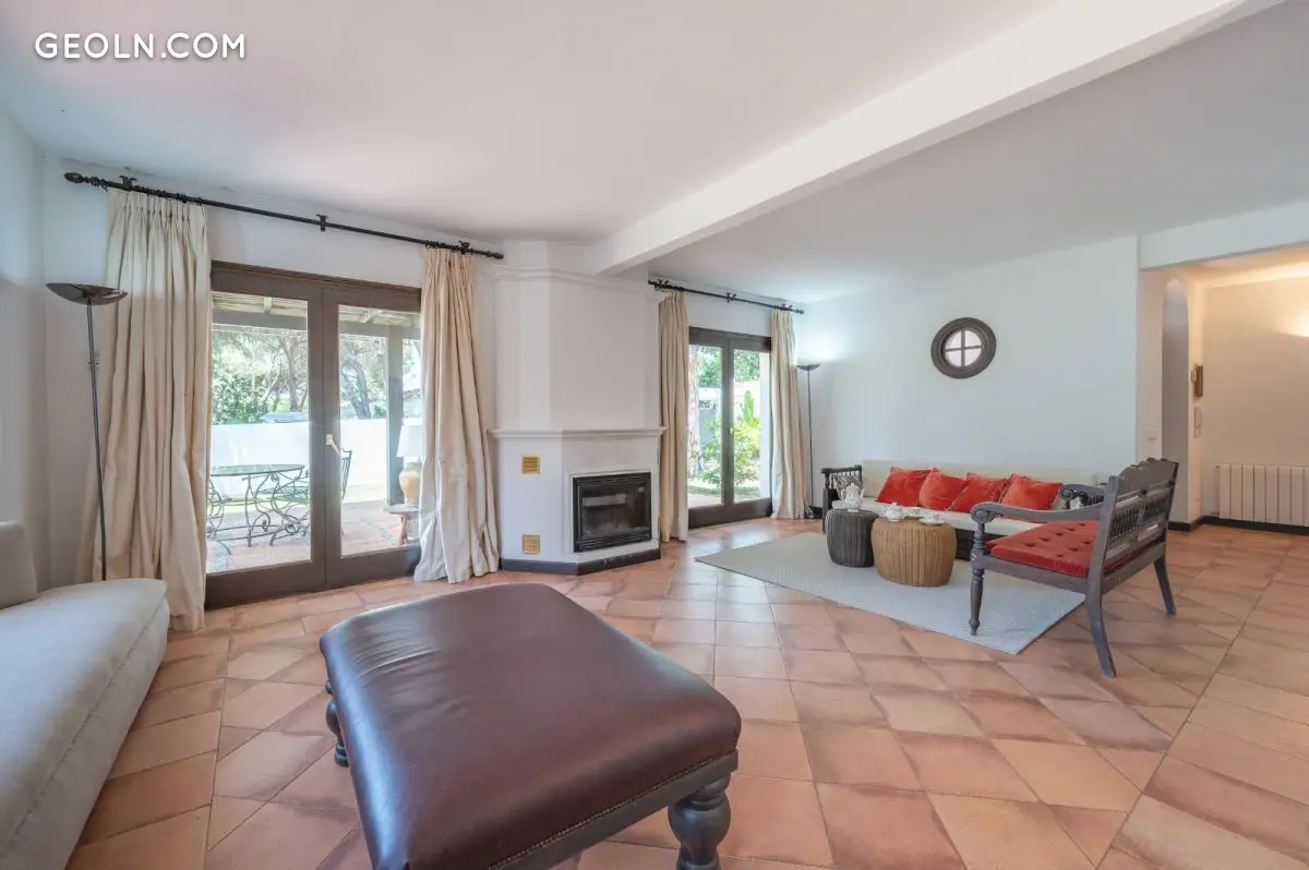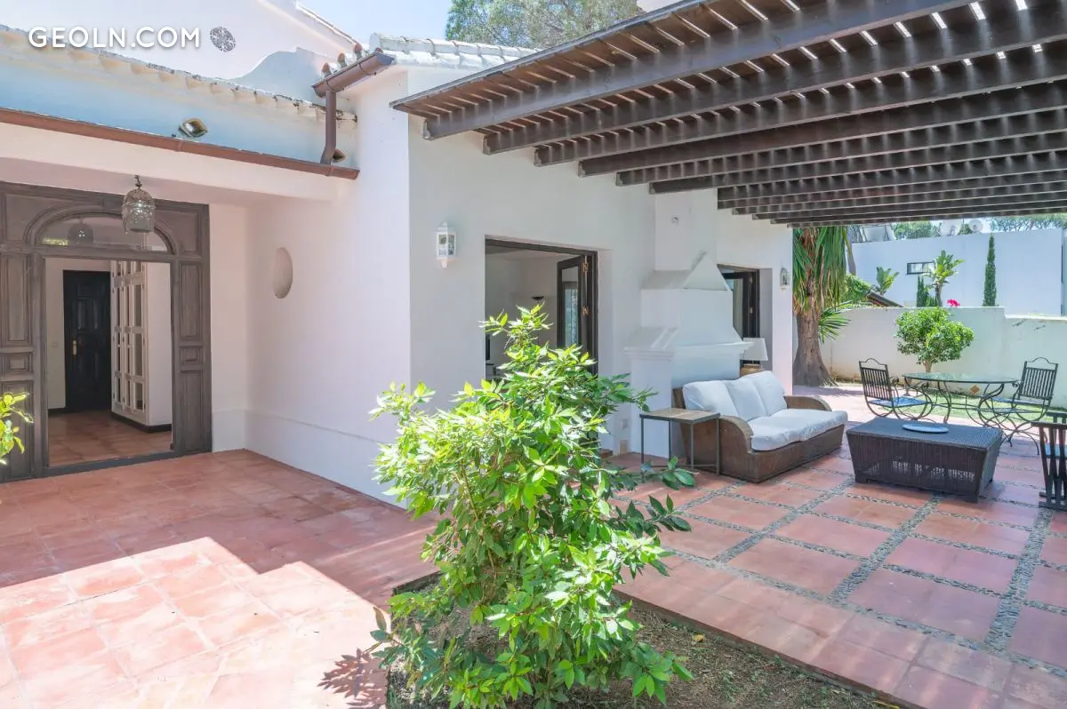 Available for viewing from March 15 This charming three bedroom villa is located in Elviria, a five minute drive from the best beaches, the famous luxury hotel Don Carlos, Nikki Beach, the port of Cabopino or Santa Maria Golf Club. The villa is located in the lower part of Elviria in a private and very quiet street, but at the same time very close to all kinds of services such as supermarkets, shops, pharmacies, restaurants and public transport. The villa, built on one floor, consists of a large living room with a fireplace, an office with direct access to a terrace with a wooden pergola and a garden. Of the three bedrooms, the main one has a separate dressing room and direct access to the garden, the other two share a bathroom. The large kitchen is fully furnished and has a dining area and a separate entrance. There is a parking space for two cars and a large playground.