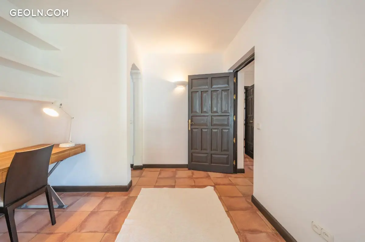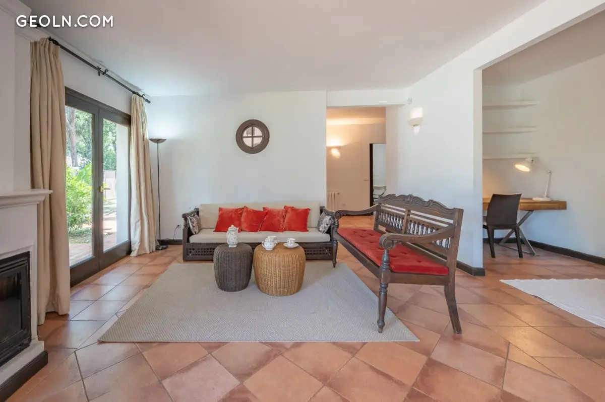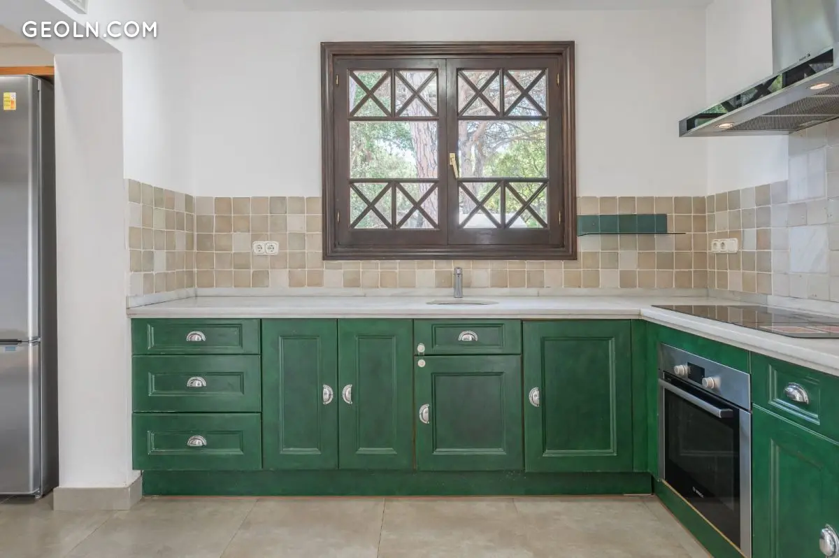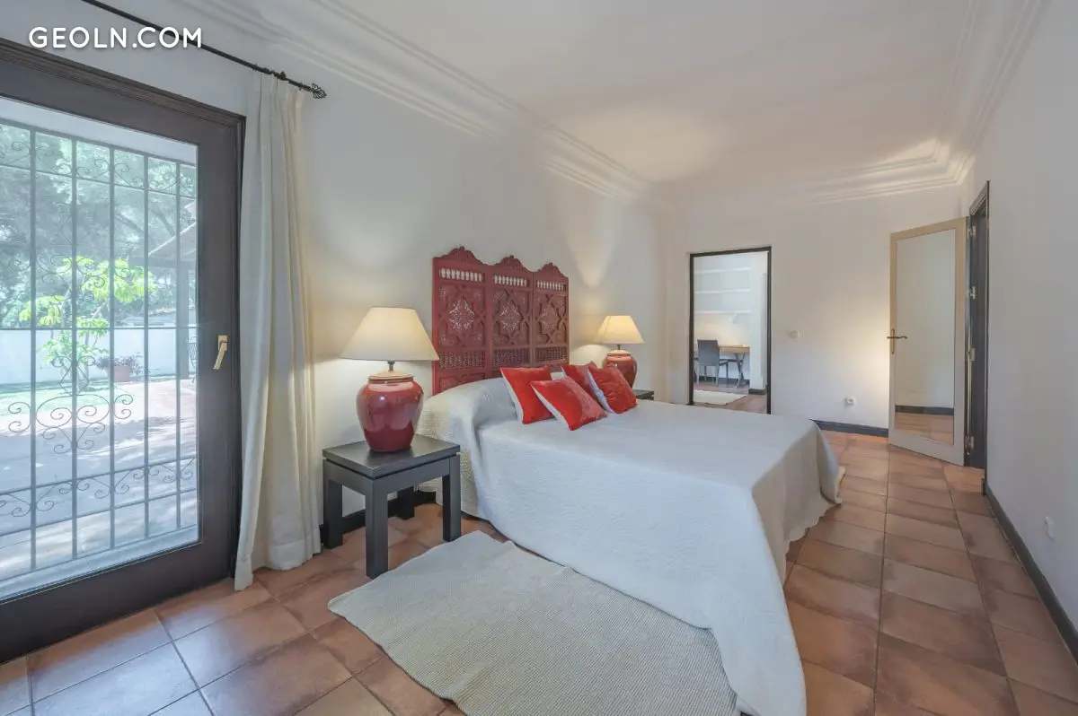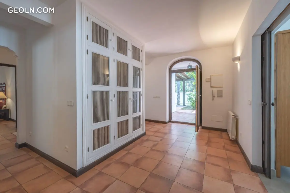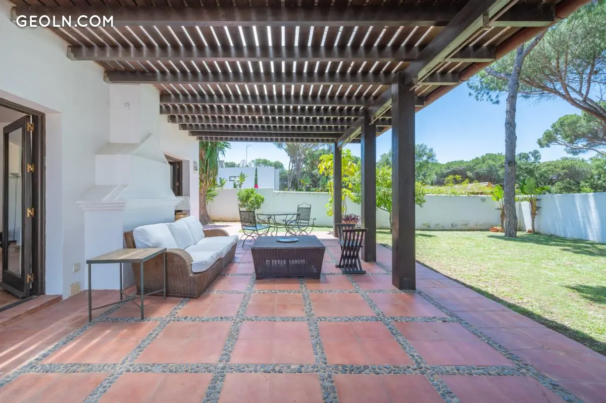 Available for viewing from March 15 This charming three bedroom villa is located in Elviria, a five minute drive from the best beaches, the famous luxury hotel Don Carlos, Nikki Beach, the port of Cabopino or Santa Maria Golf Club. The villa is located in the lower part of Elviria in a private and very quiet street, but at the same time very close to all kinds of services such as supermarkets, shops, pharmacies, restaurants and public transport. The villa, built on one floor, consists of a large living room with a fireplace, an office with direct access to a terrace with a wooden pergola and a garden. Of the three bedrooms, the main one has a separate dressing room and direct access to the garden, the other two share a bathroom. The large kitchen is fully furnished and has a dining area and a separate entrance. There is a parking space for two cars and a large playground.