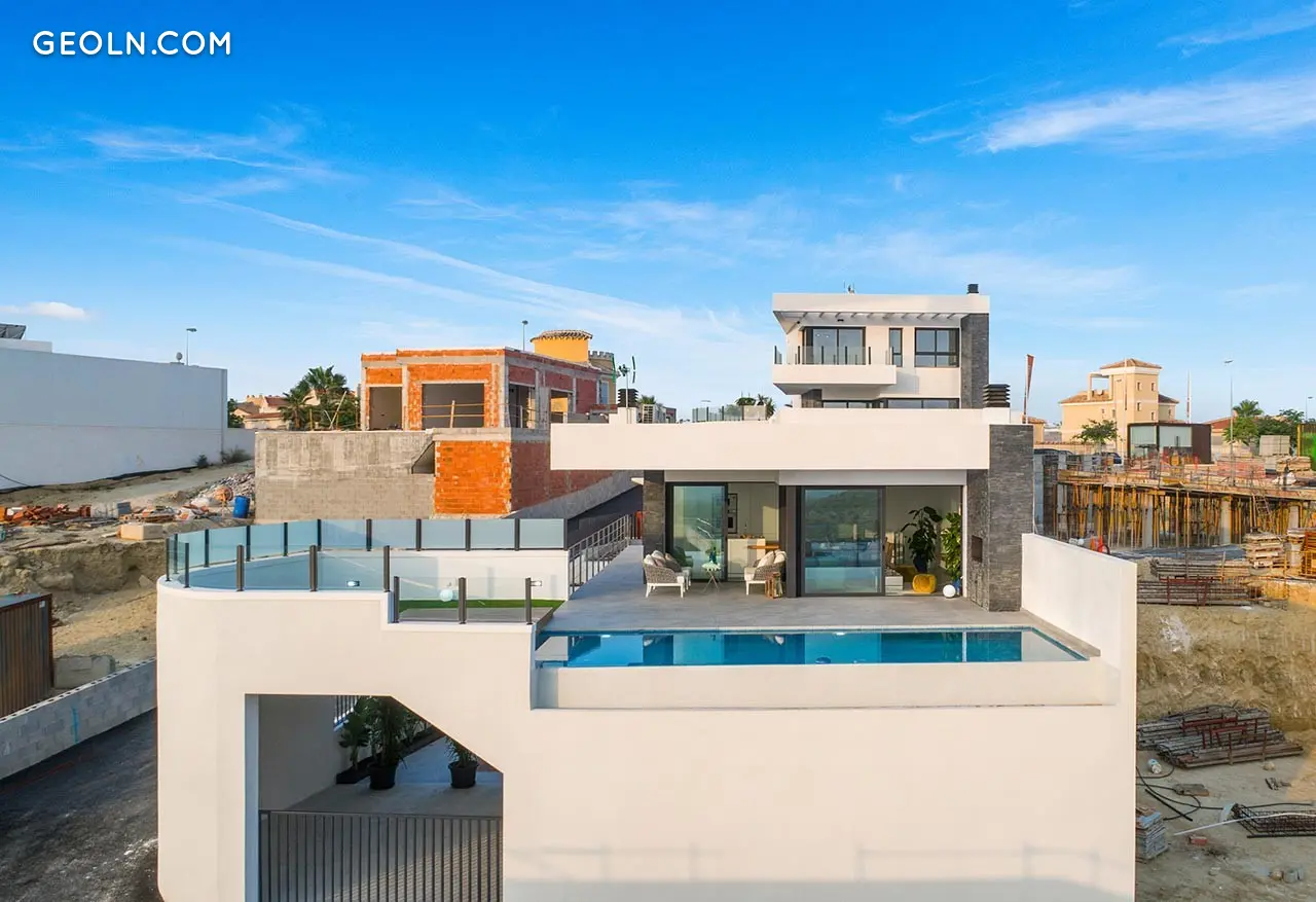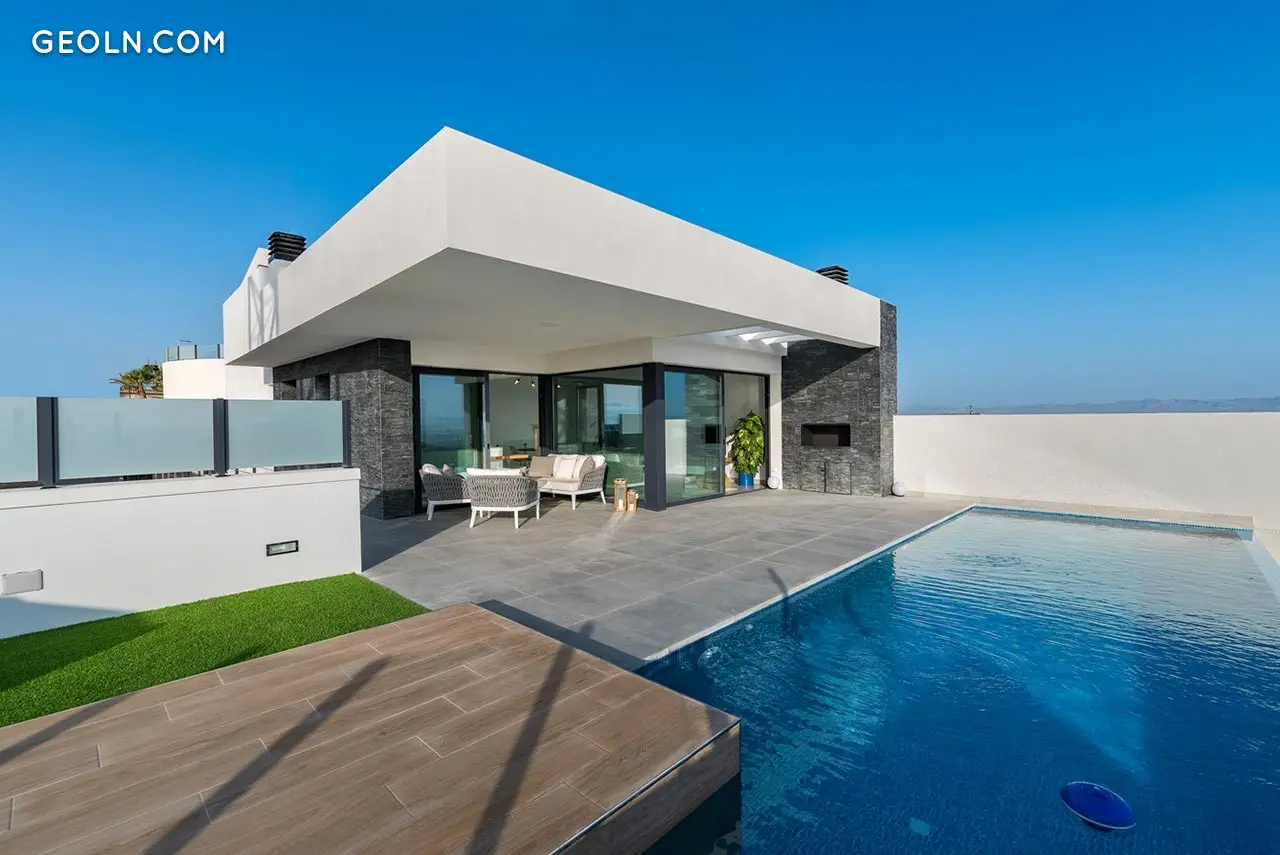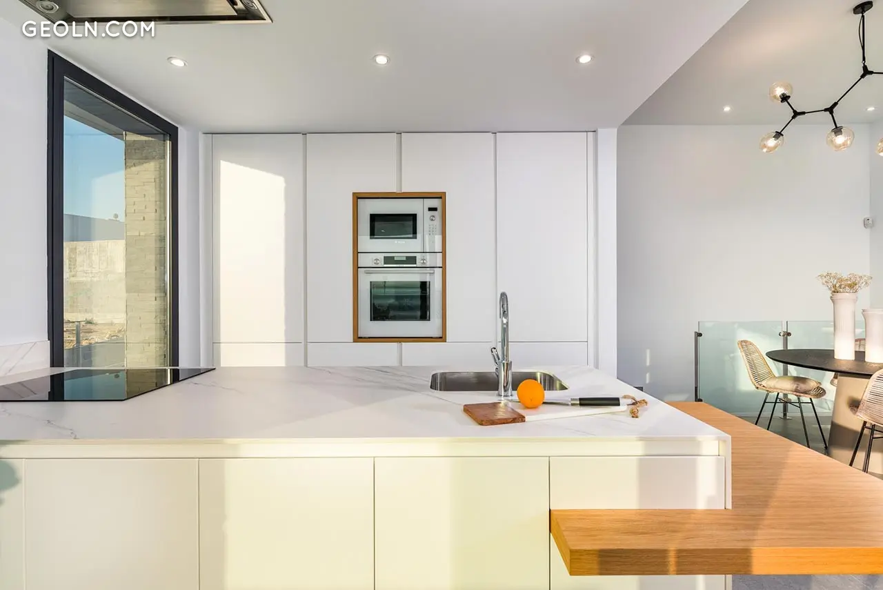 Skyline is a collection of detached 3 bedroom, 3 bathroom villas located in La Marquesa Golf, Rojales. The villas are decorated in a modern and sophisticated style and feature spacious and bright rooms. Considering different distribution needs, Skyline villas are divided into two models: Line model distributed on the ground floor and basement, and Sky model with basement and 2 floors. Both types of accommodation include a large solarium. The memory of quality couldn't be more complete as Skyline offers a paneled kitchen with appliances included built into the living room, a walk in closet in the master bedroom, underfloor heating in the bathrooms, air conditioning.Positioners throughout the house, motorized blinds and a parking space. . And, as if that weren't enough, the villas come with plots from 280 meters and you will find a large terrace, an infinity pool and a barbecue area.