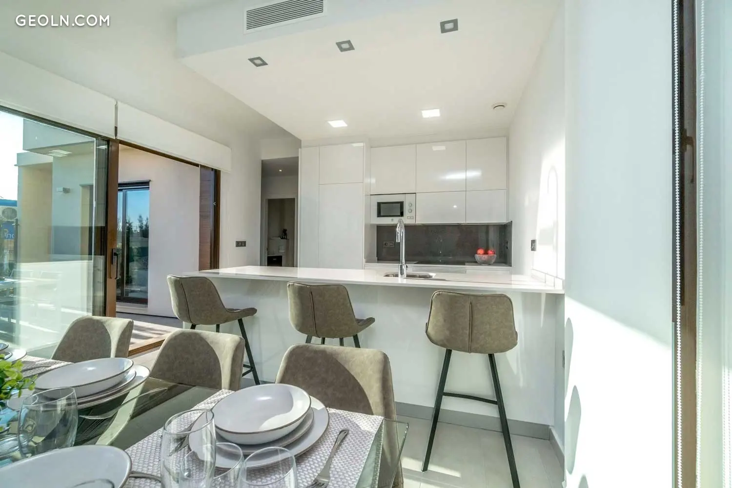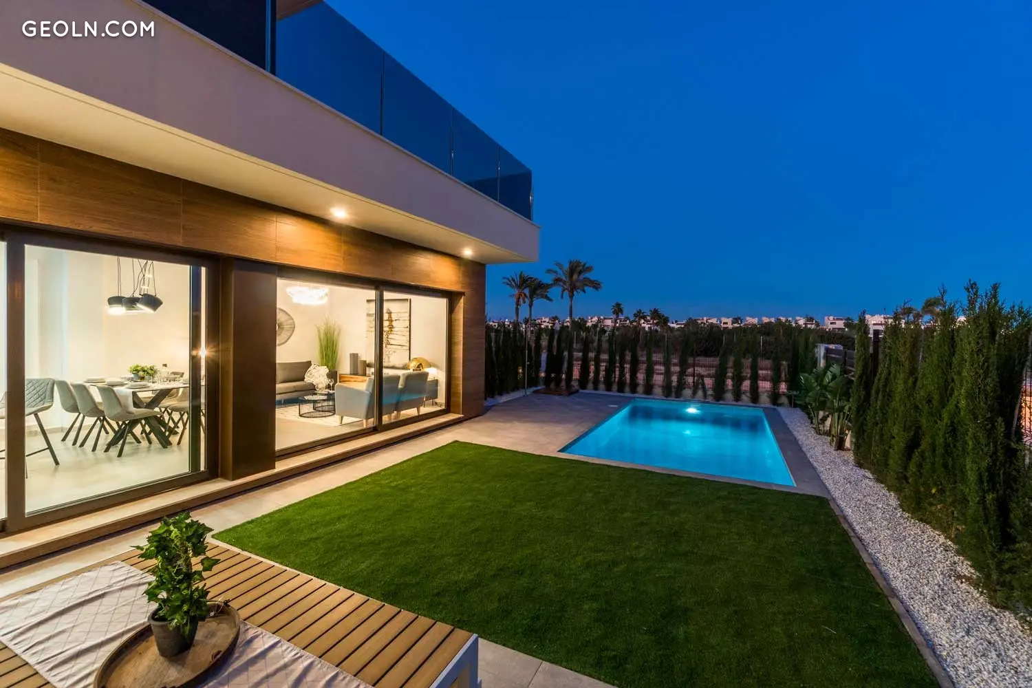 Tindra Homes Green is a residential complex of detached villas with plots of approximately 250 meters located in Los Narejos. The houses occupy 2 floors and have 3 bedrooms with 2 or 3 bathrooms to choose from. On the ground floor there is a spacious and bright living room with a built-in kitchen overlooking the garden. In addition to a full bathroom and a double bedroom. On the first floor there are two double bedrooms, a bathroom and the choice in the master bedroom between a dressing room or a bathroom. Each villa meticulously memorizes the qualities shaped by the pre-installation of air conditioning through ductwork, electric shutters, porcelain flooring, terrace and solarium, among other things. They also have spacious outside rooms with a parking space, a garden and a private pool. Want to check out the promotion? Contact Sunnier Homes!