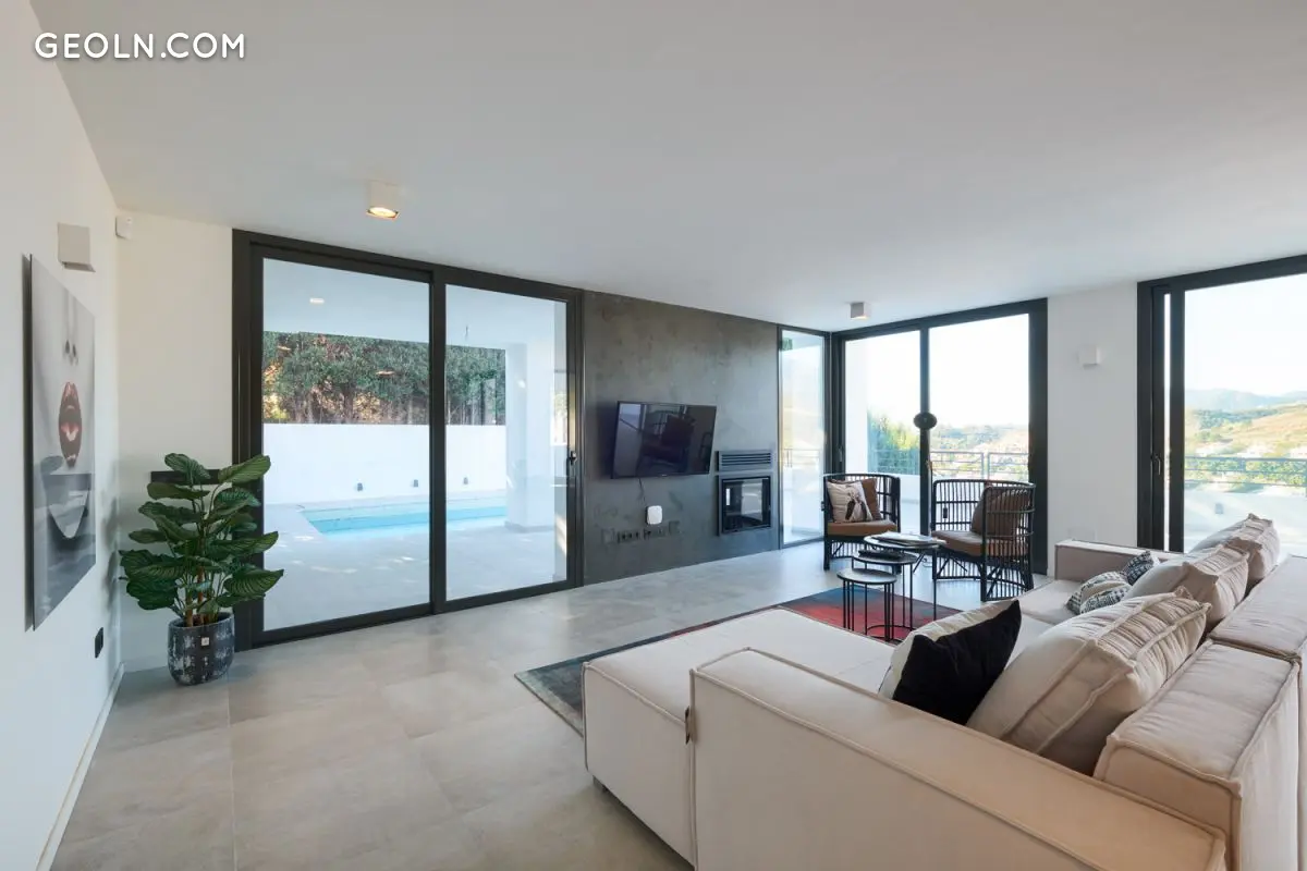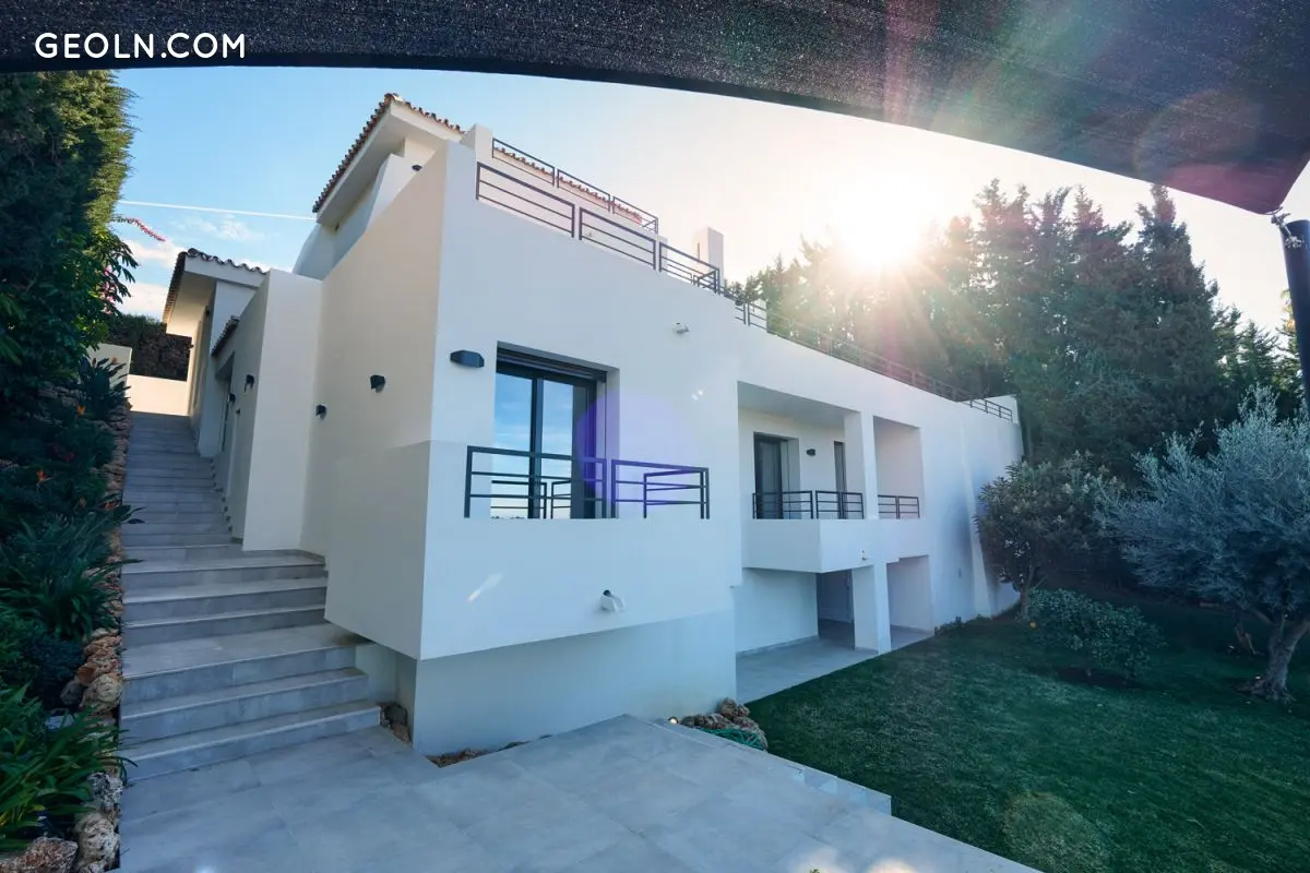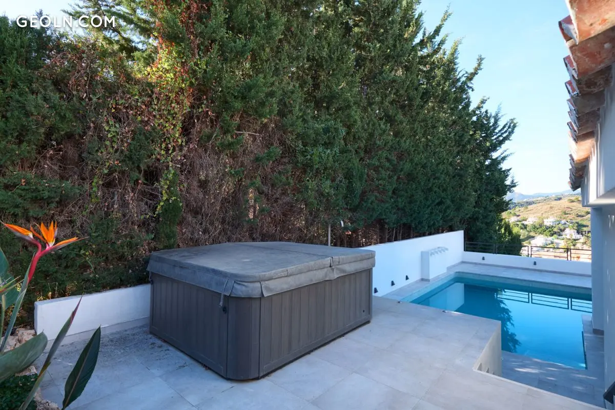 Villa in Nueva Andalucia Quality villa completely renovated located in a unique location in Nueva Andalucia. Southwest orientation, panoramic views of the coast and the Mediterranean Sea. Quiet and secluded home in a gated community. Ground floor with large open plan living and dining area and fully equipped kitchen. Guest bedroom with guest toilet. Direct access to outdoor and covered terraces and private pool. Upper floor: large bedroom with terrace. First floor: two guest bedrooms and bathroom. Private garden with seating area and BBQ. Garage for auto. Just a few minutes drive from all services, golf clubs, Puerto Banus and Marbella.