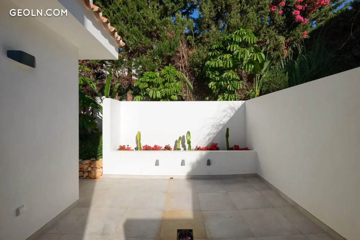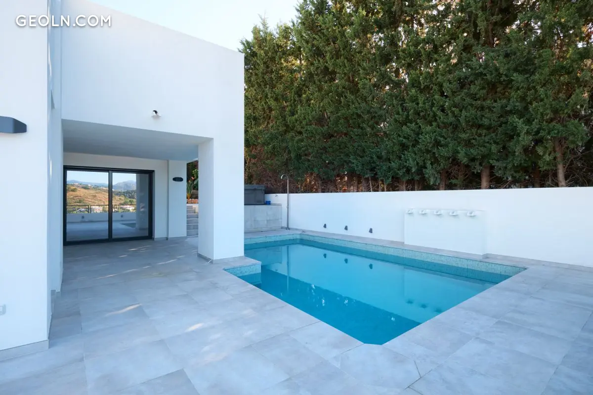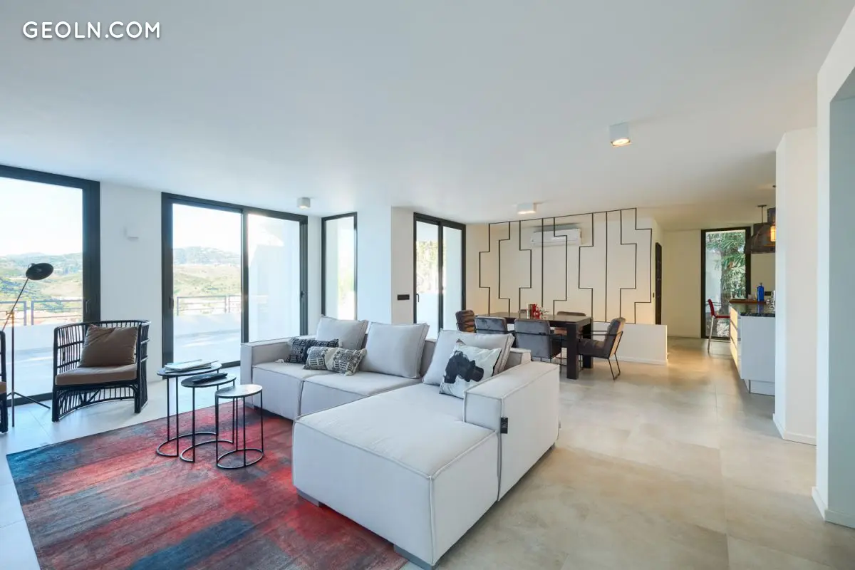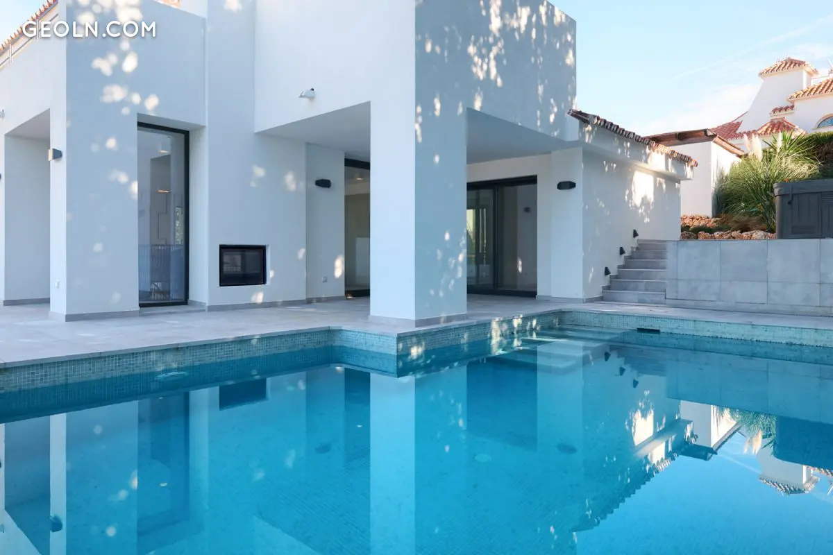 Villa in Nueva Andalucia Quality villa completely renovated located in a unique location in Nueva Andalucia. Southwest orientation, panoramic views of the coast and the Mediterranean Sea. Quiet and secluded home in a gated community. Ground floor with large open plan living and dining area and fully equipped kitchen. Guest bedroom with guest toilet. Direct access to outdoor and covered terraces and private pool. Upper floor: large bedroom with terrace. First floor: two guest bedrooms and bathroom. Private garden with seating area and BBQ. Garage for auto. Just a few minutes drive from all services, golf clubs, Puerto Banus and Marbella.