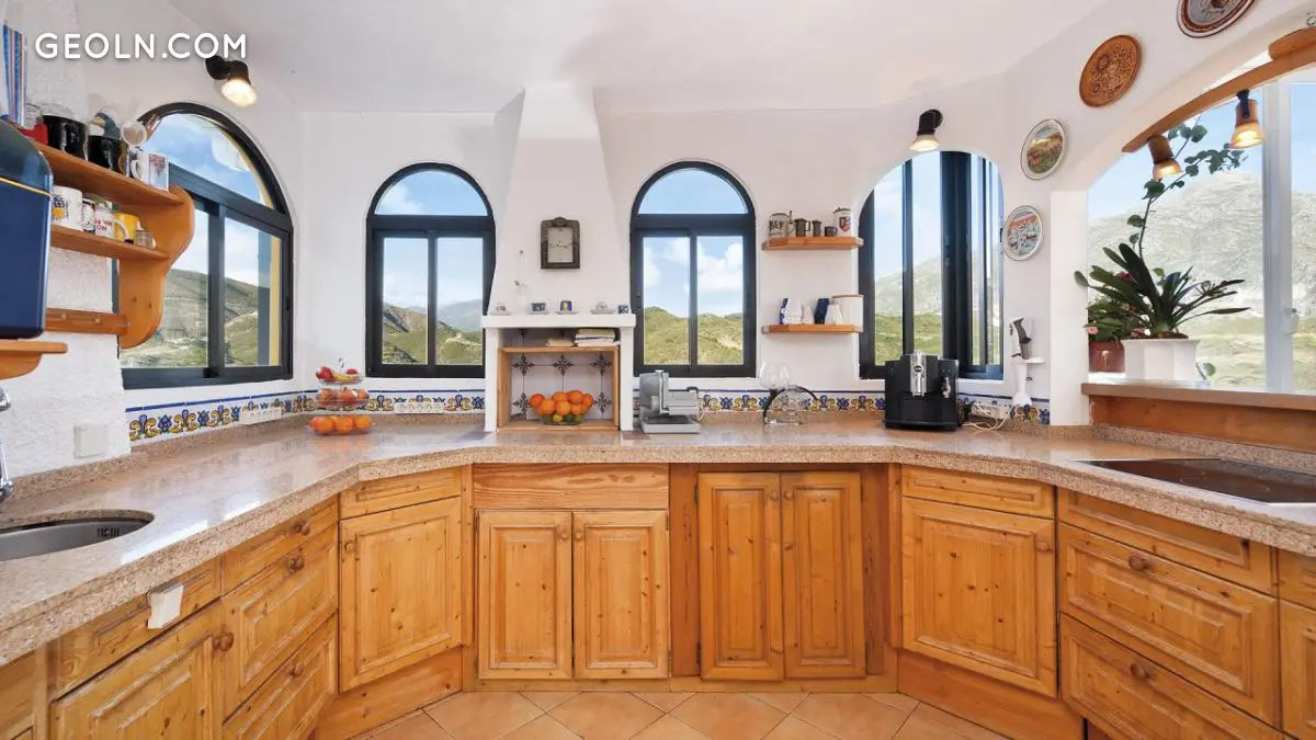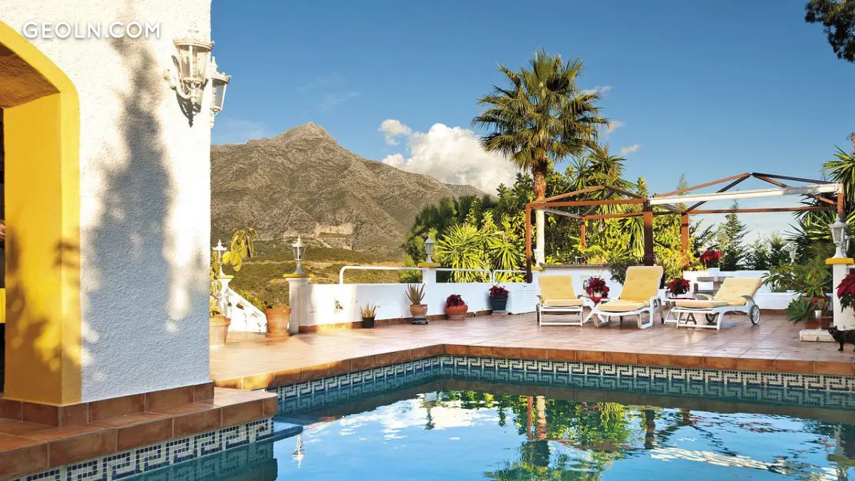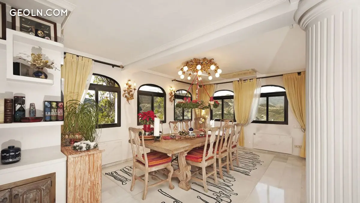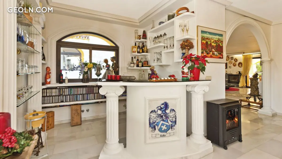 Spacious east-facing villa located on a plot of approximately 1558 m². Family house with sea views in Nueva Andalucia is located on three floors. The built-up area of about 466 m² has 5 bedrooms, 4 bathrooms, a spacious living room with a fireplace, a dining room, a large kitchen, various terraces and a swimming pool.On the second floor there is a fully equipped kitchen with a separate dining area, a living room with access to the terraces, as well as a swimming pool. There is also a spacious bedroom with a bathroom on this floor.