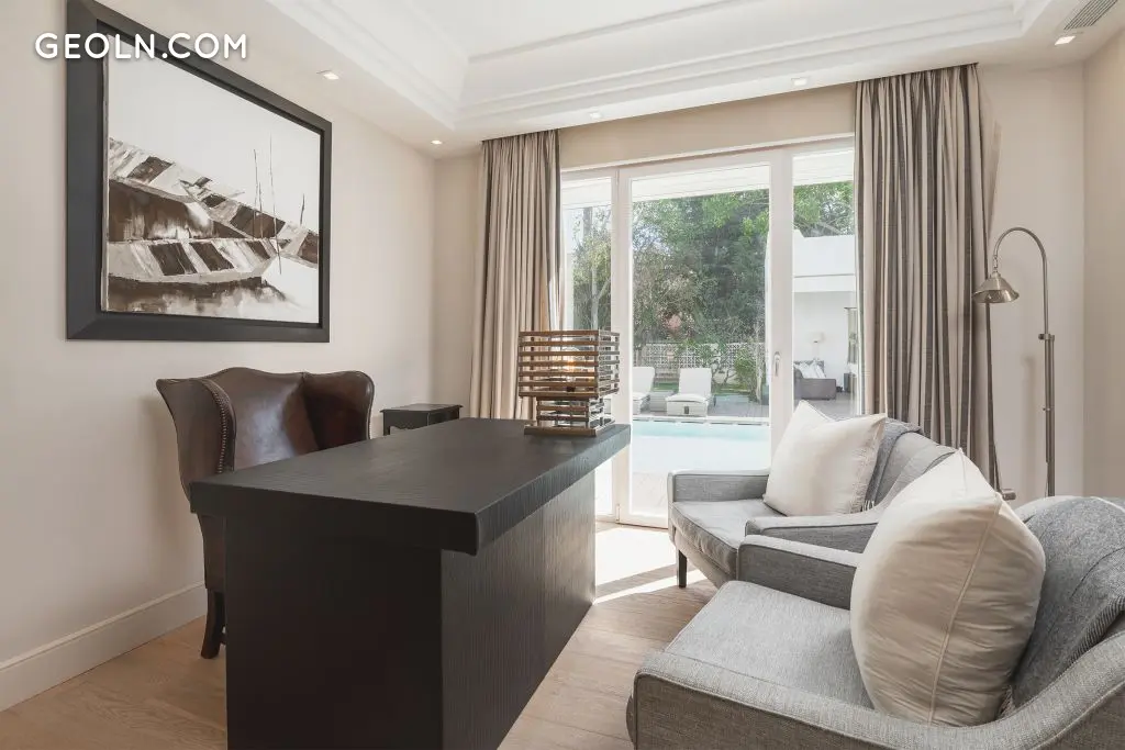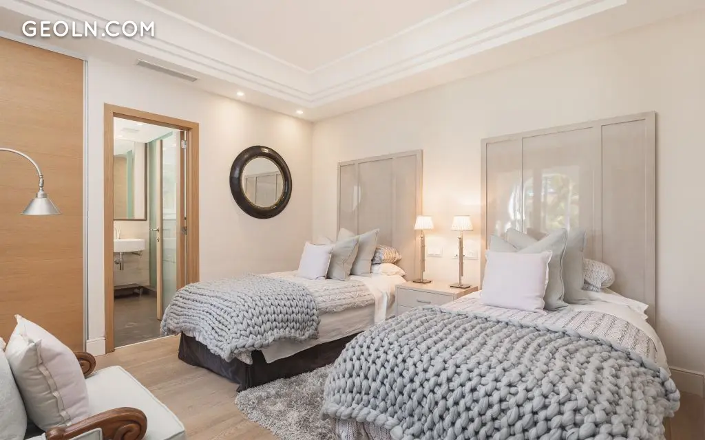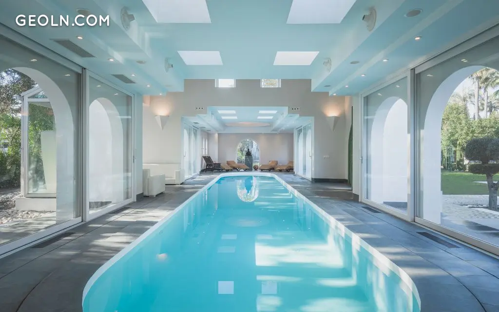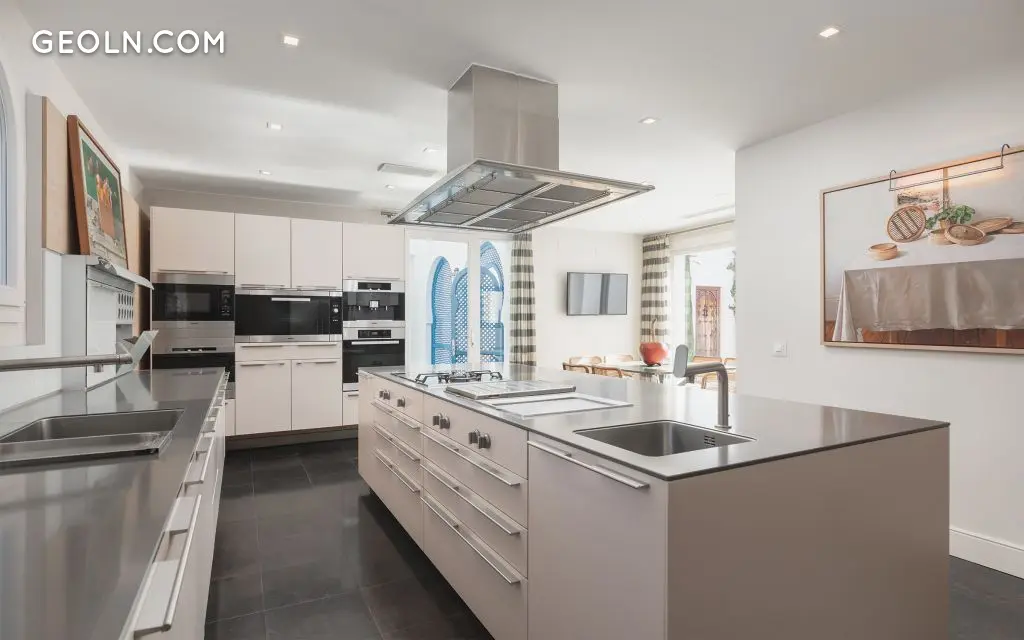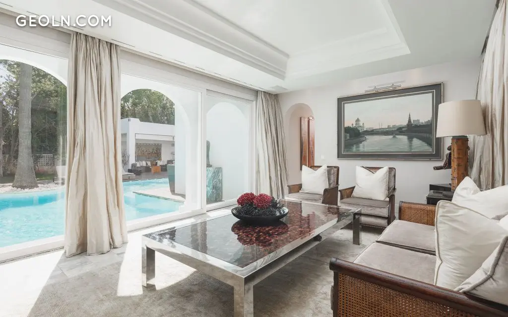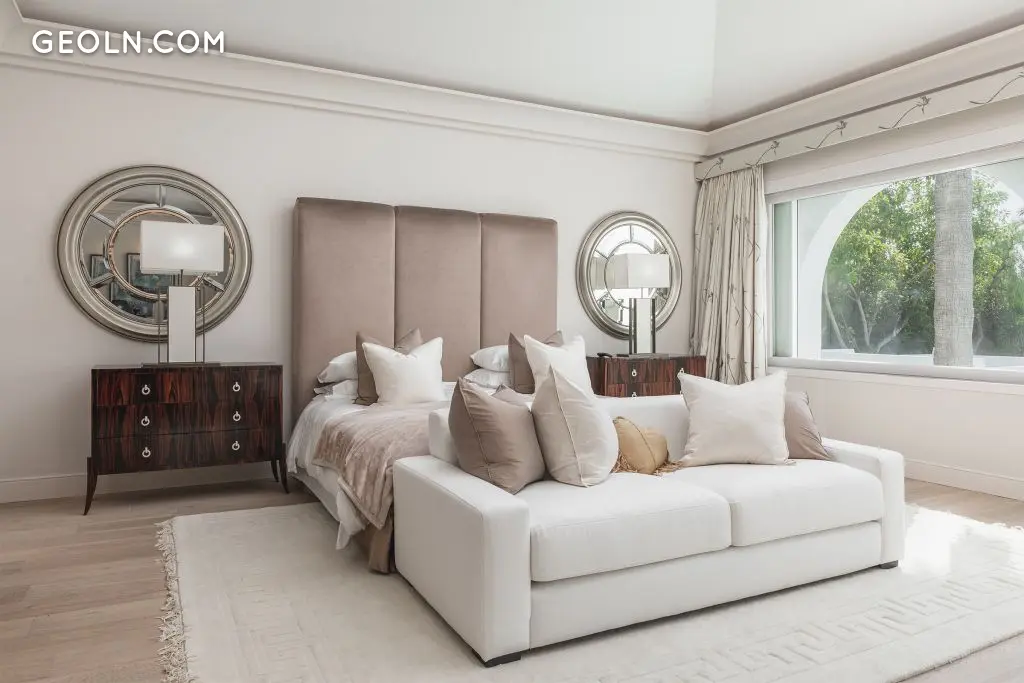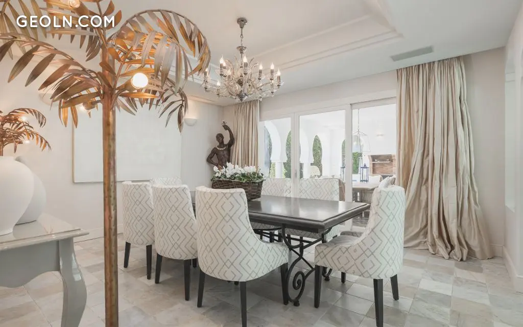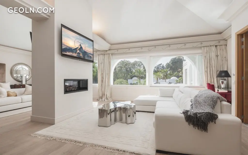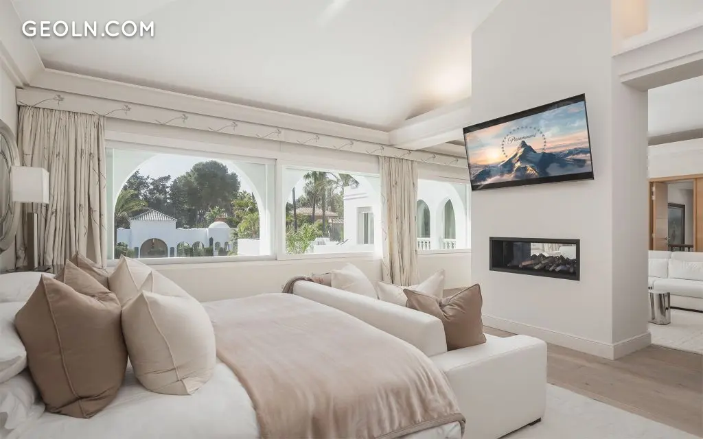 VILLA IN GUADALMINA BAJA, SAN PEDRO DE ALCANTARA Exquisite Andalusian Moorish style villa in Guadalmina Baja, an exclusive residential area located just a few meters from the beach and the Guadalmina Spa Golf Resort. Antique wooden doors lead to a patio with a fountain and a driveway with a carport and additional parking space. We are immediately greeted by an imposing double-height hall with a guest toilet leading to a huge living room divided into several seating areas and a cinema room with a guest toilet among them; canteen; fully equipped kitchen with top quality appliances; 3 double bedrooms for guests with bathrooms; an additional guest bedroom currently used as an office; veranda with dining area and barbecue area; access to the swimming pool with terrace, sun loungers and covered seating area. On the first floor: an impressive 150 m2 master suite with a separate sitting area, fireplace, two walk-in closets and a magnificent bathroom divided into two separate areas and with a free-standing bathtub; further bedroom with bathroom with access to a large terrace with sun loungers. Indoor Pavilion: Large heated indoor pool with seating area. Next to the entrance: separate staff apartment with bedroom and bathroom. Garage for two cars. The villa is located on a large plot surrounded by gardens, palm trees and crystal clear water inspired by Andalusian Moorish motifs, a real joy to the senses. Very private villa in one of the most prestigious residential areas of Marbella, in a quiet location, close to all amenities and the beach.